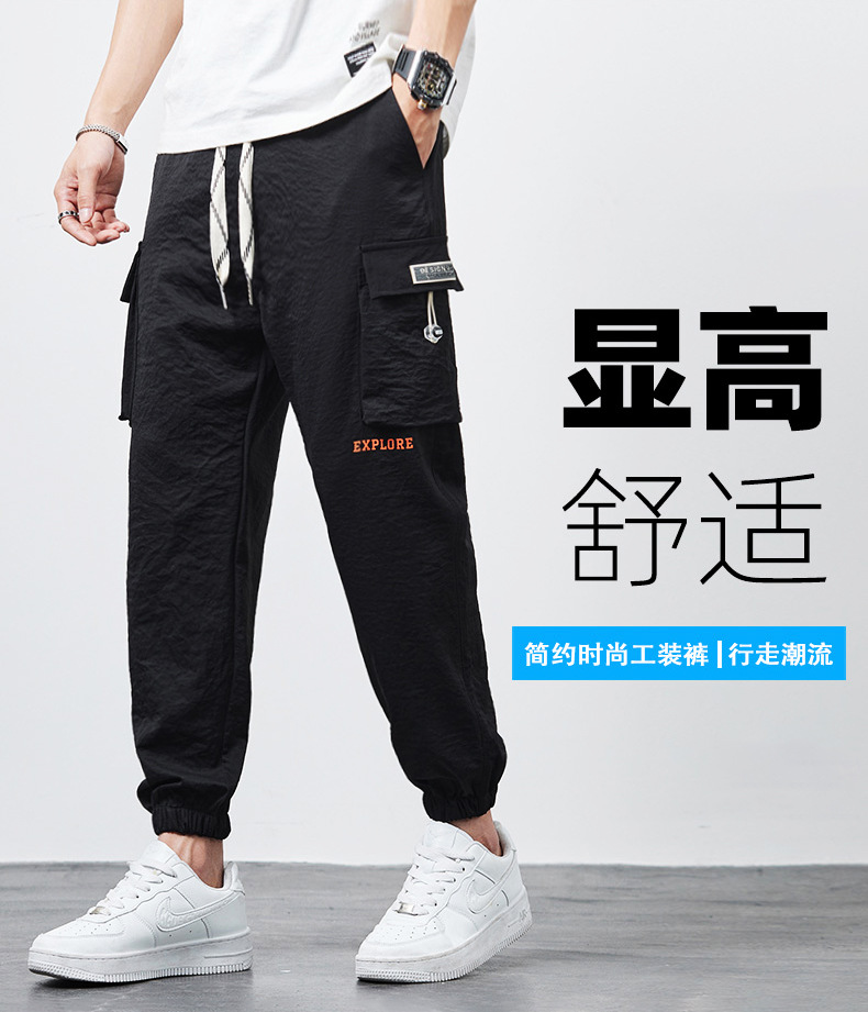 여름 트렌디 한 남자 잘 생긴 올매치 레그 툴링 자른 바지 통통한 대형 플러스 뚱뚱한 느슨한 얇은 스포츠 캐주얼 바지스토어 가기