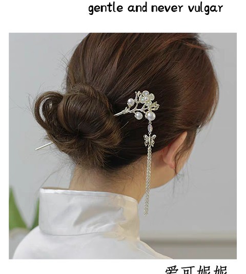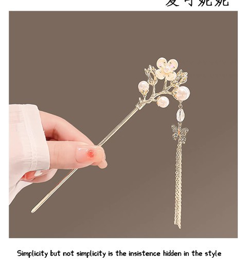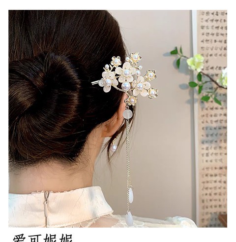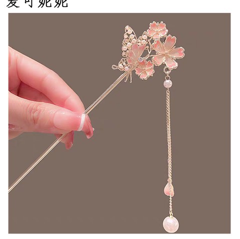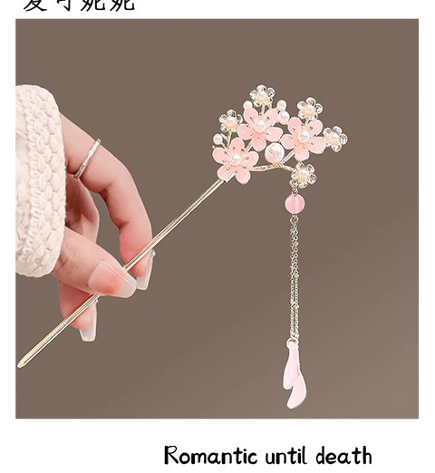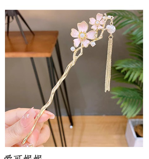 새로운 중국 스타일 골동품 스타일 핑크 꽃 술 머리 머리핀 여성의 2024 새로운 디자인 느낌 디스크 머리 머리핀 말 얼굴 치마 헤드웨어스토어 가기