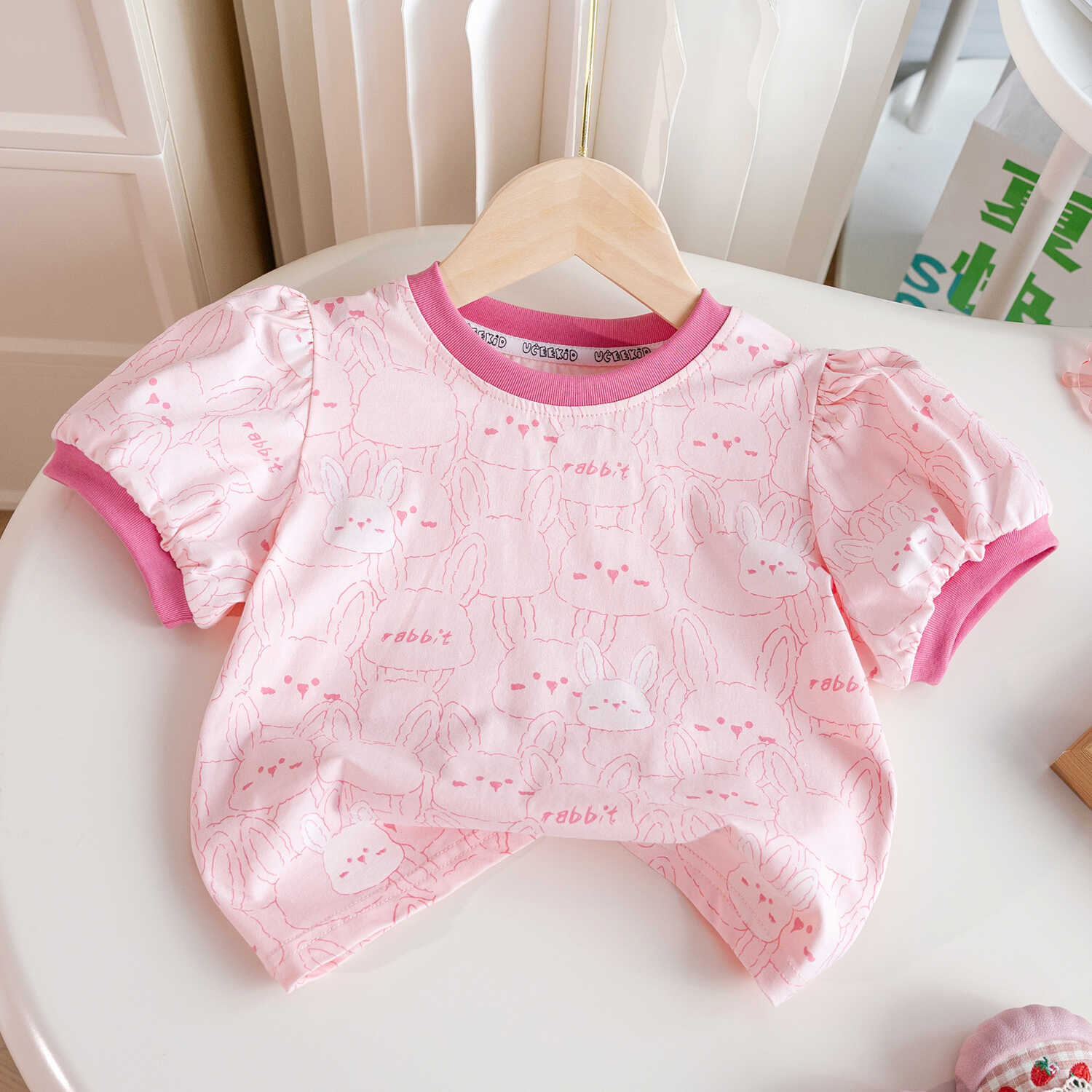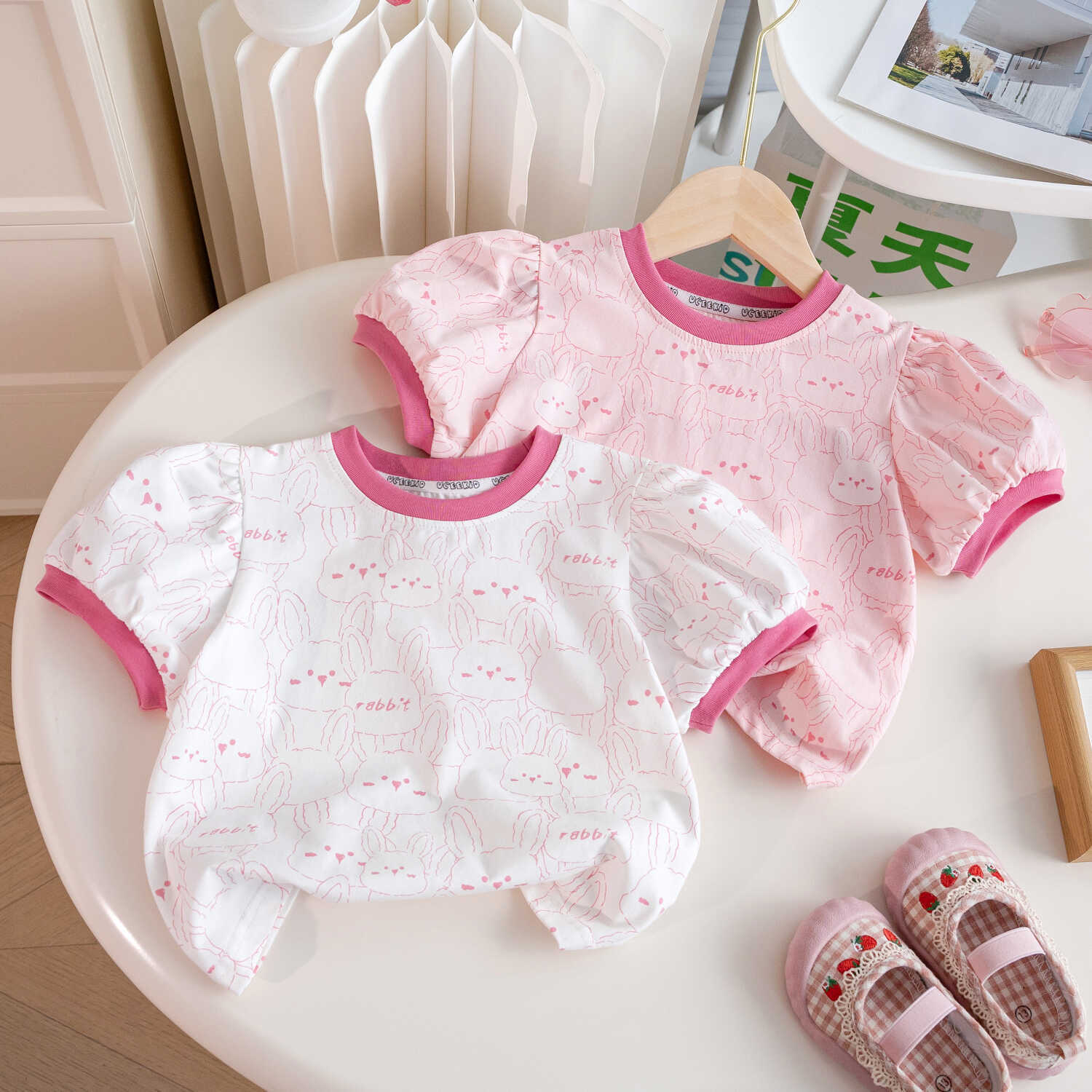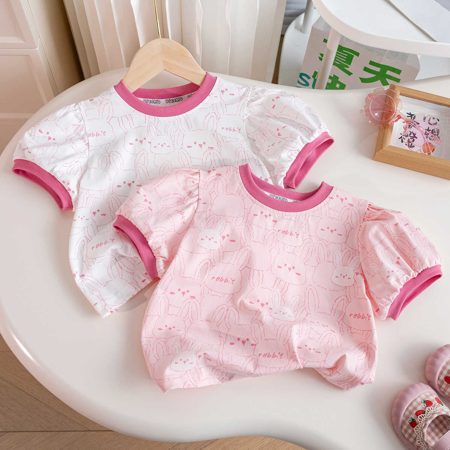 여아 여름 반팔 티셔츠 2025 신상 라운드넥 땀 흡수 만화 프린트 다용도 토끼 반팔 여름옷 트렌디