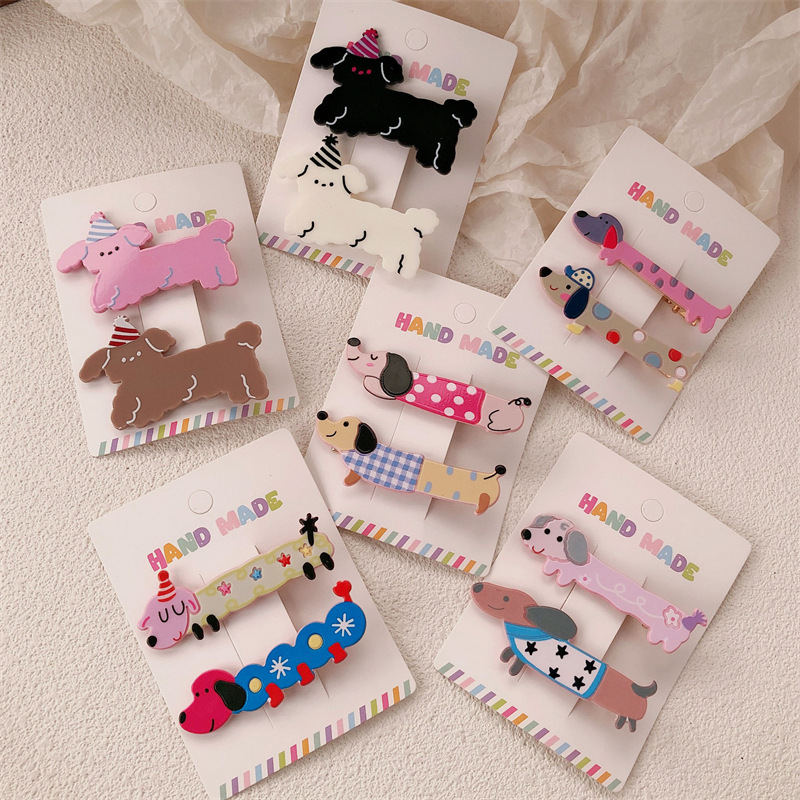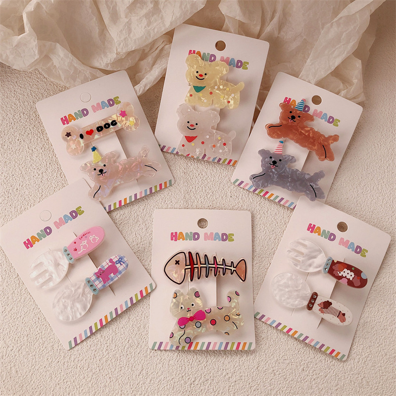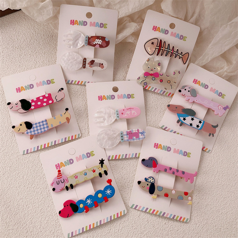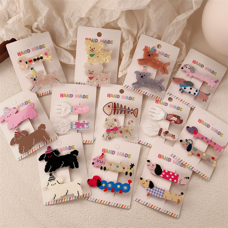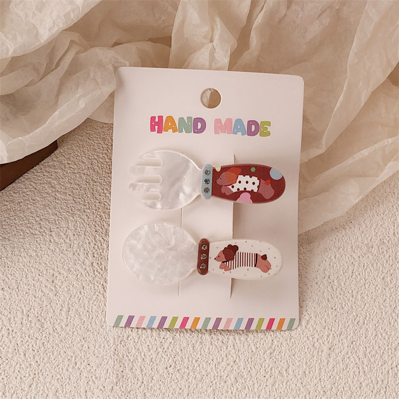 2 팩 귀여운 새끼 고양이 강아지 헤어핀 세트 달콤한 소녀 포크 스푼 뱅이 올 매치 만화 헤드웨어