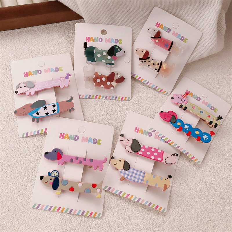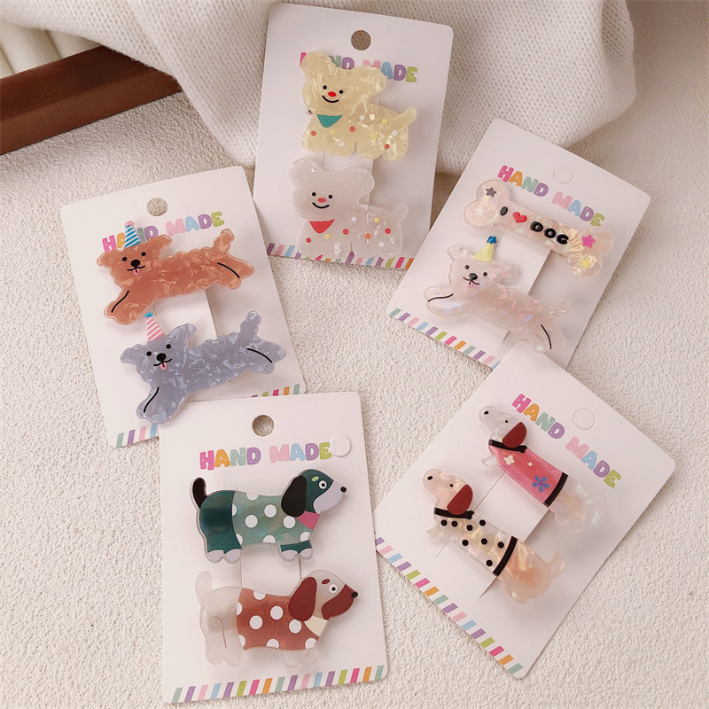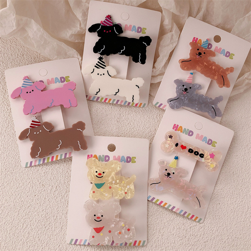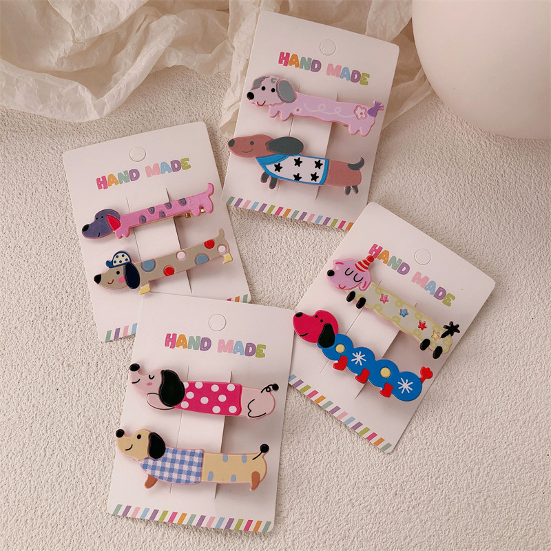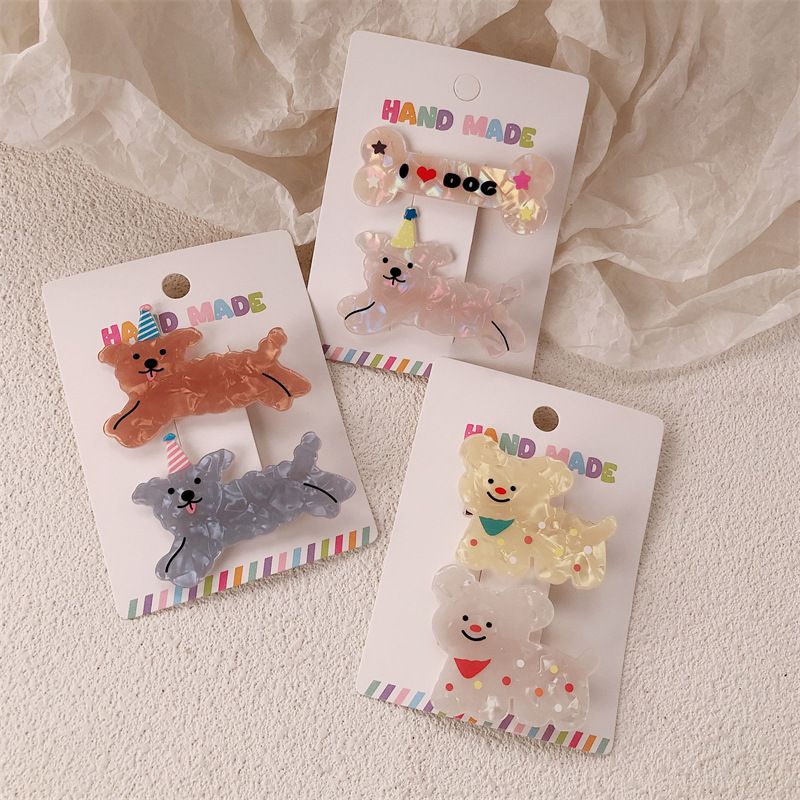 2 팩 귀여운 새끼 고양이 강아지 헤어핀 세트 달콤한 소녀 포크 스푼 뱅이 올 매치 만화 헤드웨어