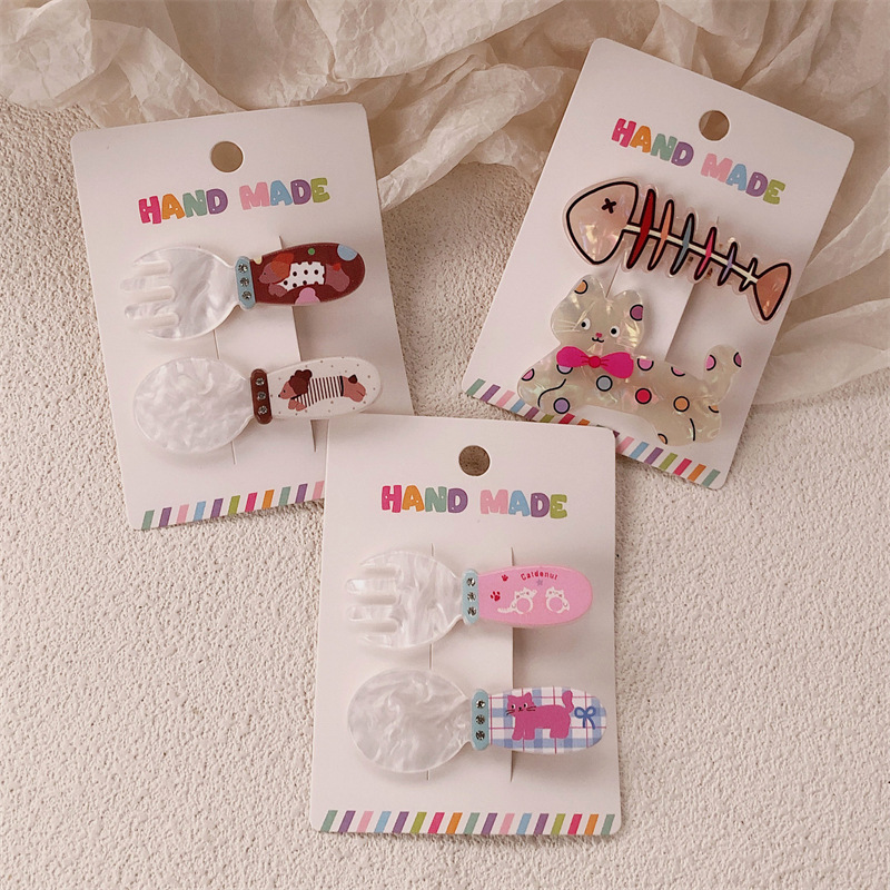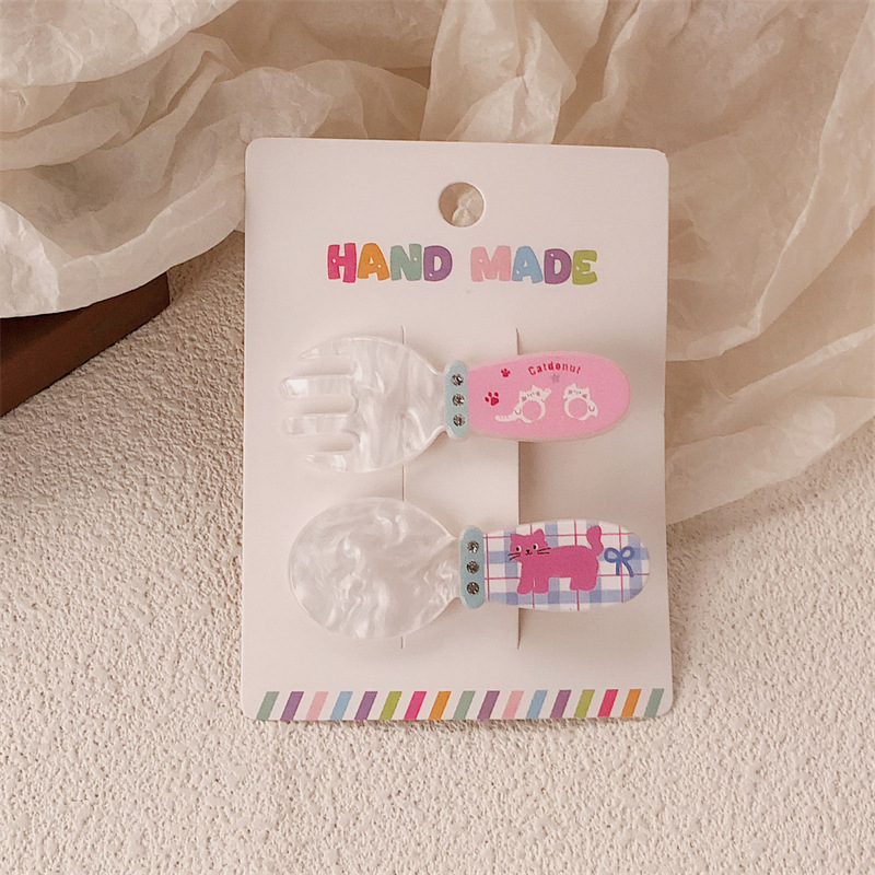 2 팩 귀여운 새끼 고양이 강아지 헤어핀 세트 달콤한 소녀 포크 스푼 뱅이 올 매치 만화 헤드웨어스토어 가기