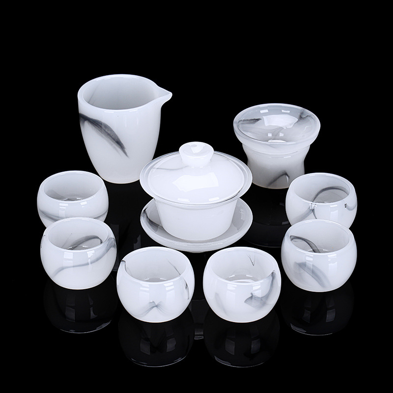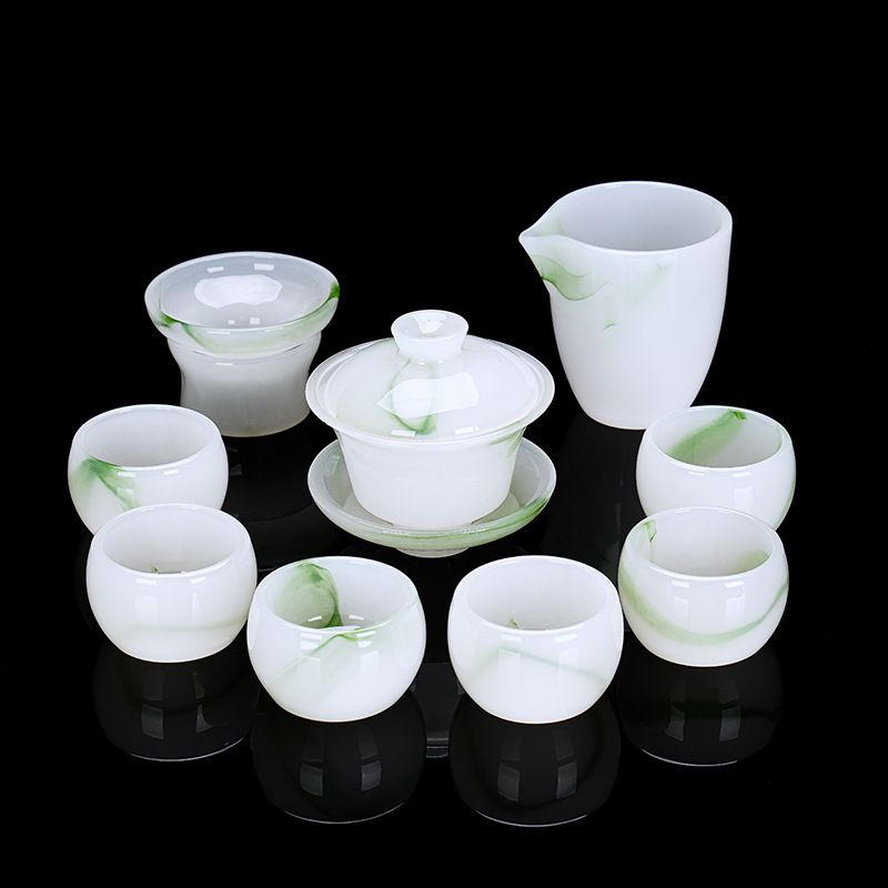 • 9 머리 흰색 옥 유리 차 세트 (선물 상자)
