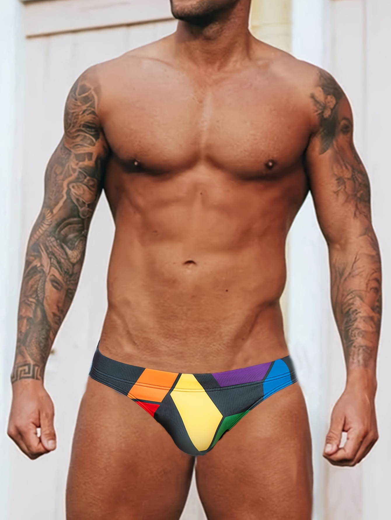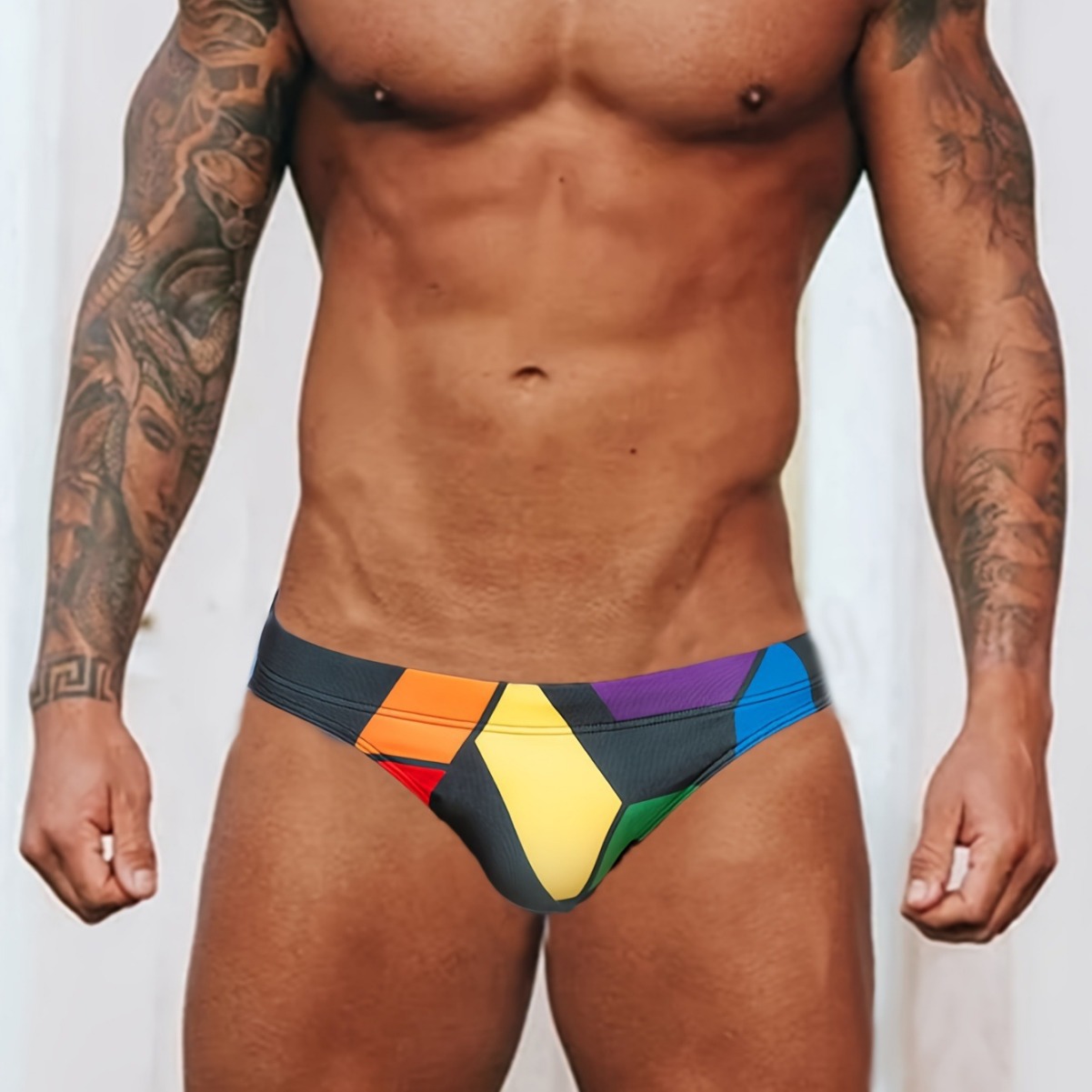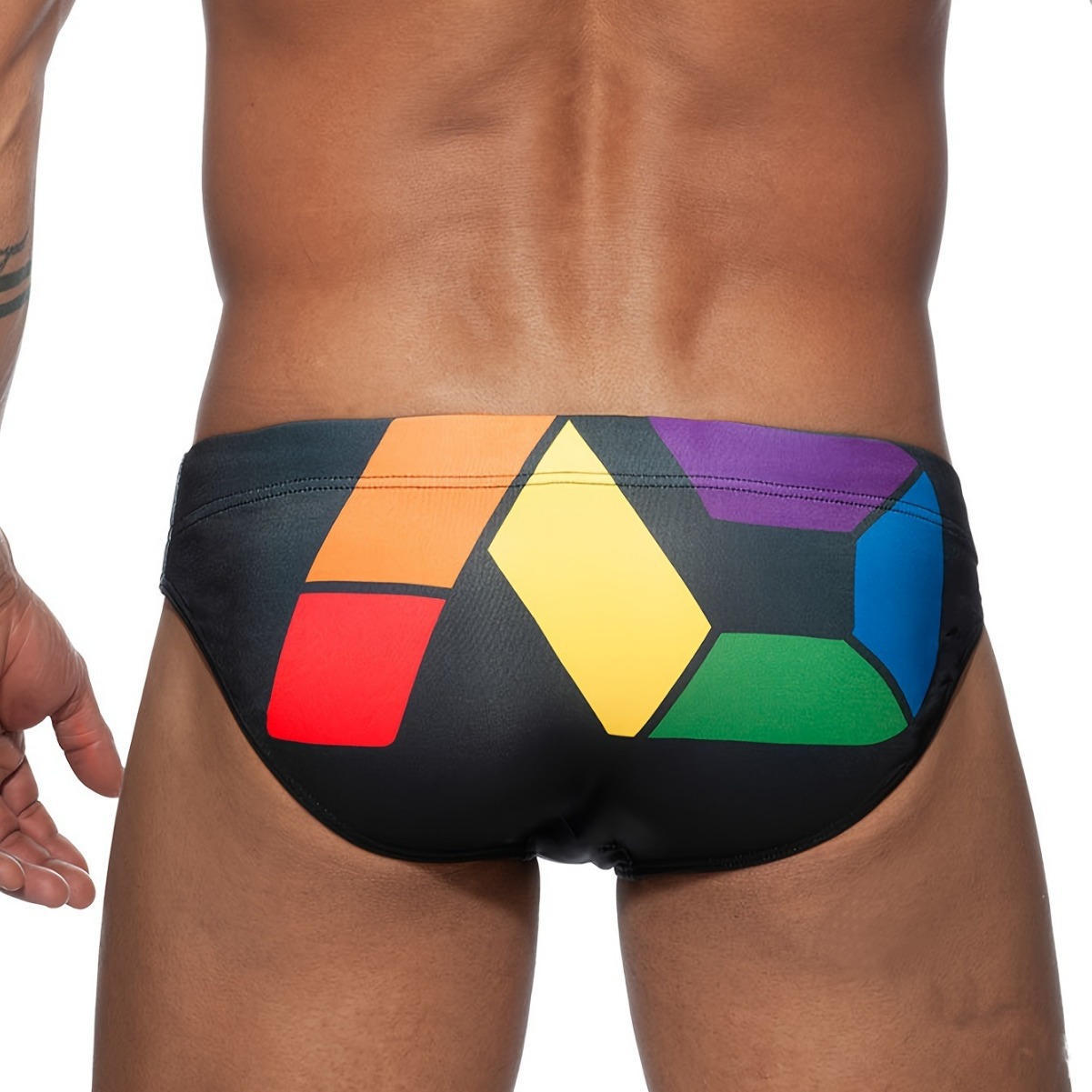 국경 간 대외 무역 남성 컬러 블록 안티 라이트 안티 당혹감 수영 해변 삼각형 수영 트렁크 낮은 허리 섹시한 타이트 재고