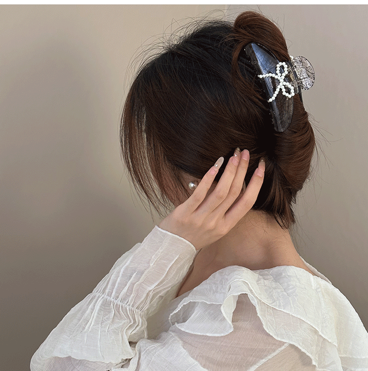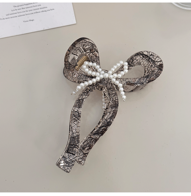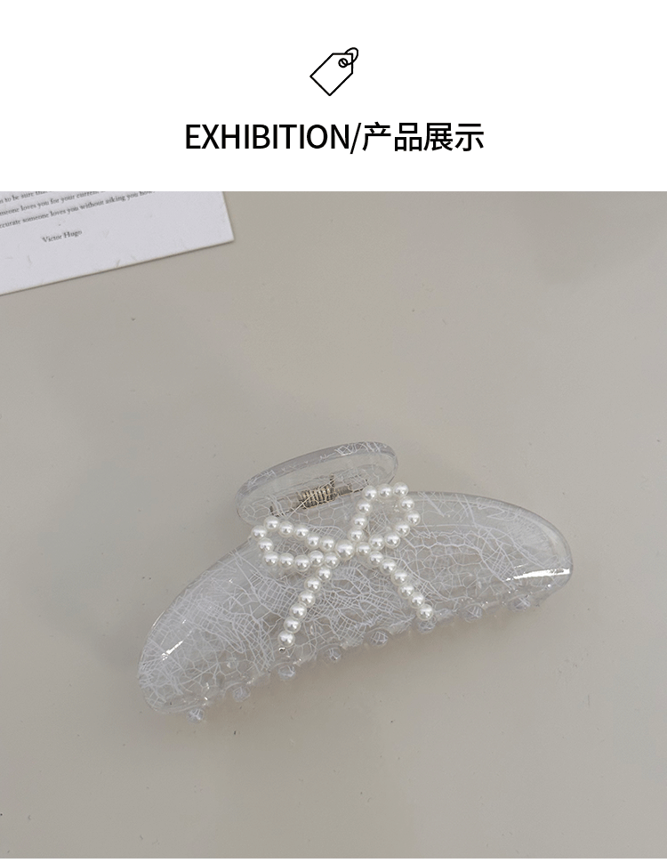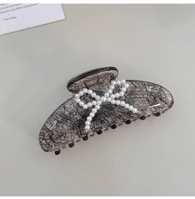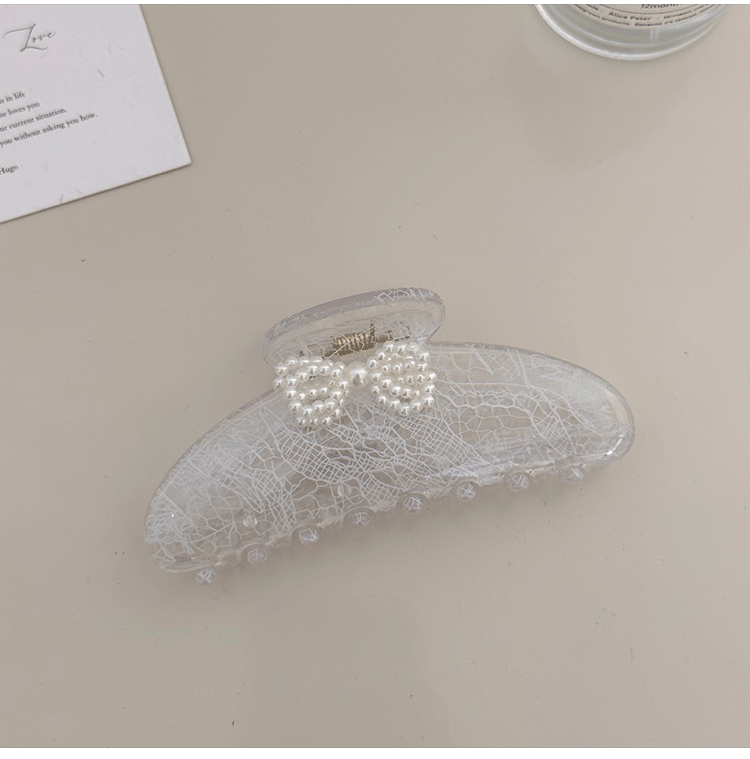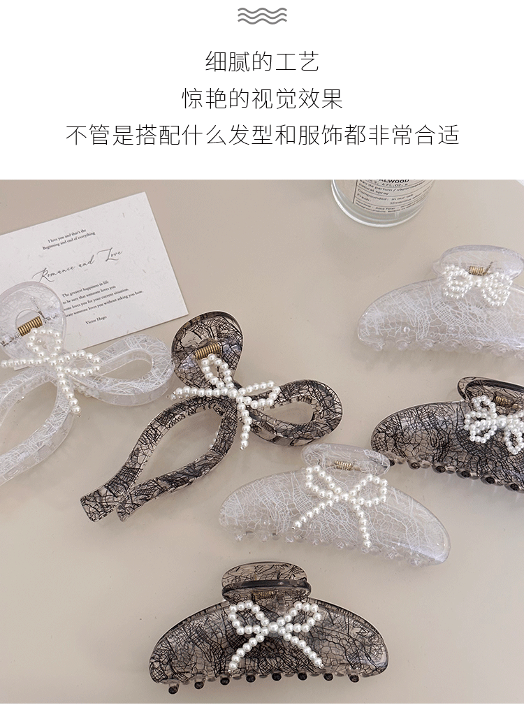 진주 활 그랩 클립 멀티 컬러 레이스 패턴 중간 세련된 반 그랩 힌드 헤드 디스크 헤어핀 우아한 상어 클립 한국어스토어 가기