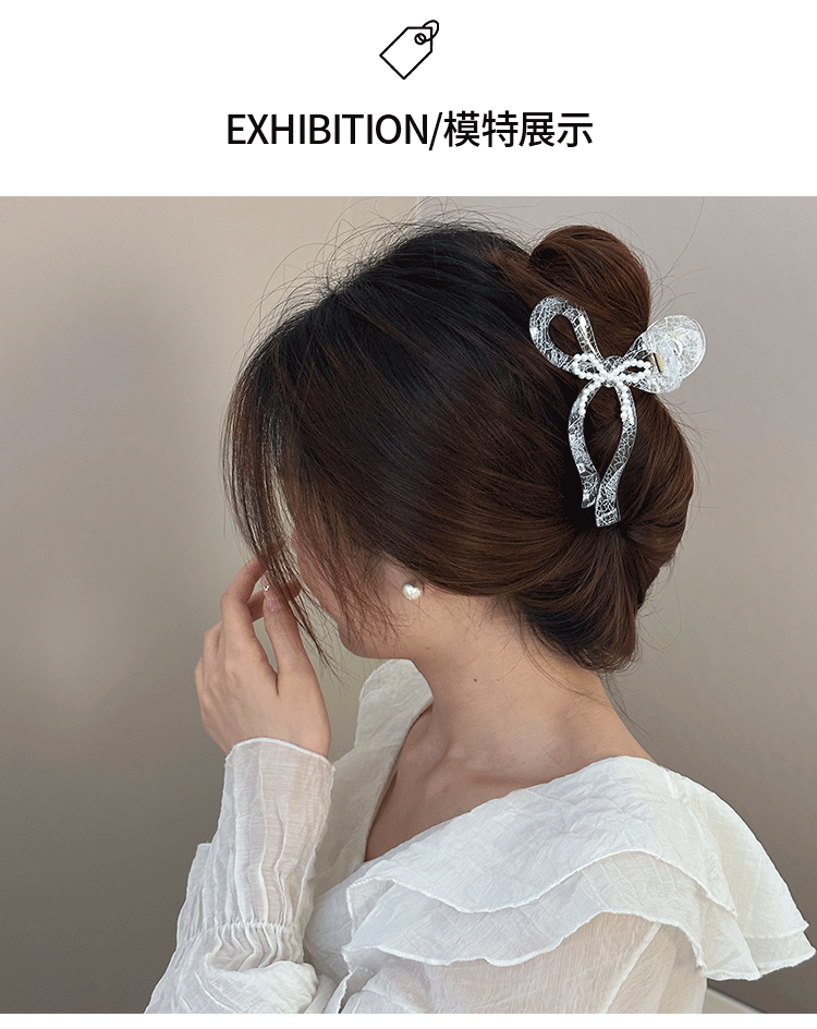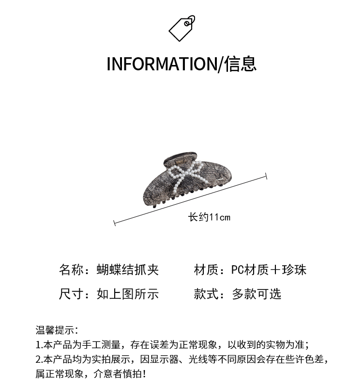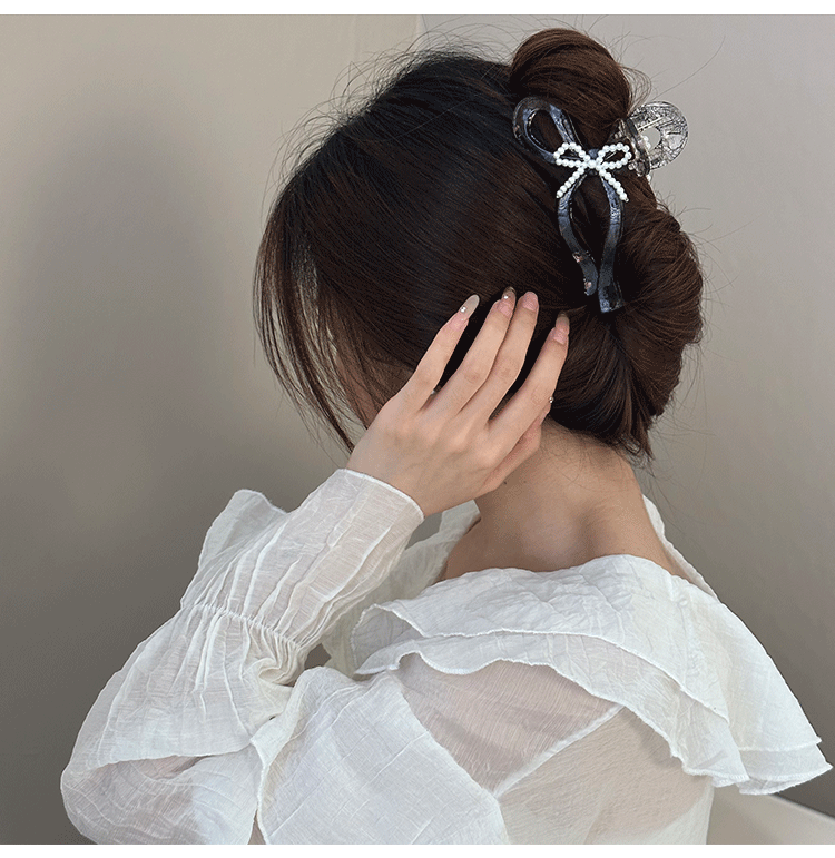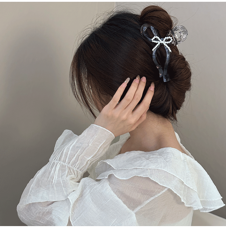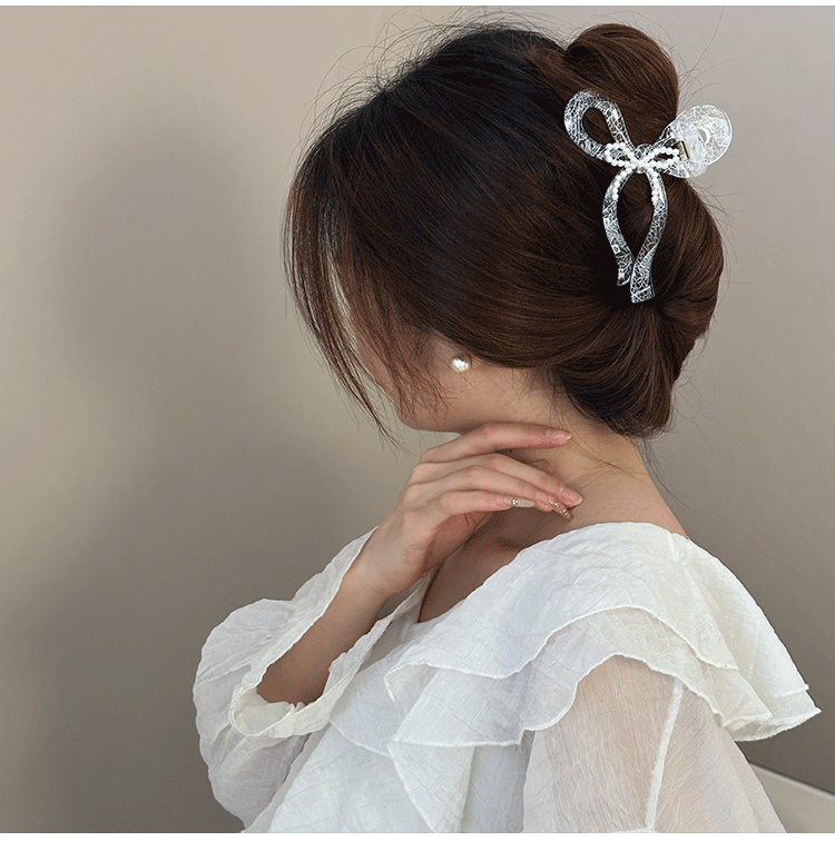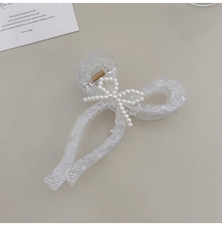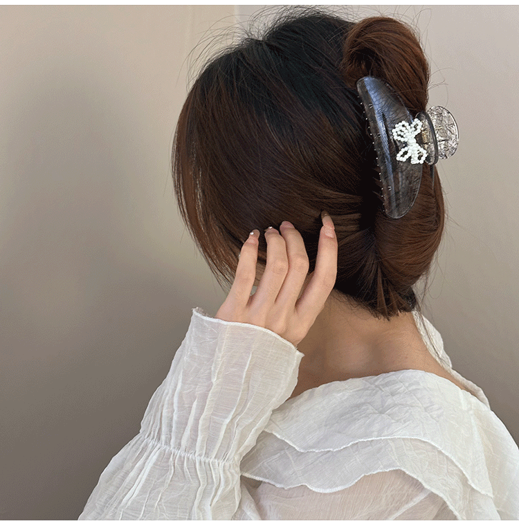 진주 활 그랩 클립 멀티 컬러 레이스 패턴 중간 세련된 반 그랩 힌드 헤드 디스크 헤어핀 우아한 상어 클립 한국어스토어 가기