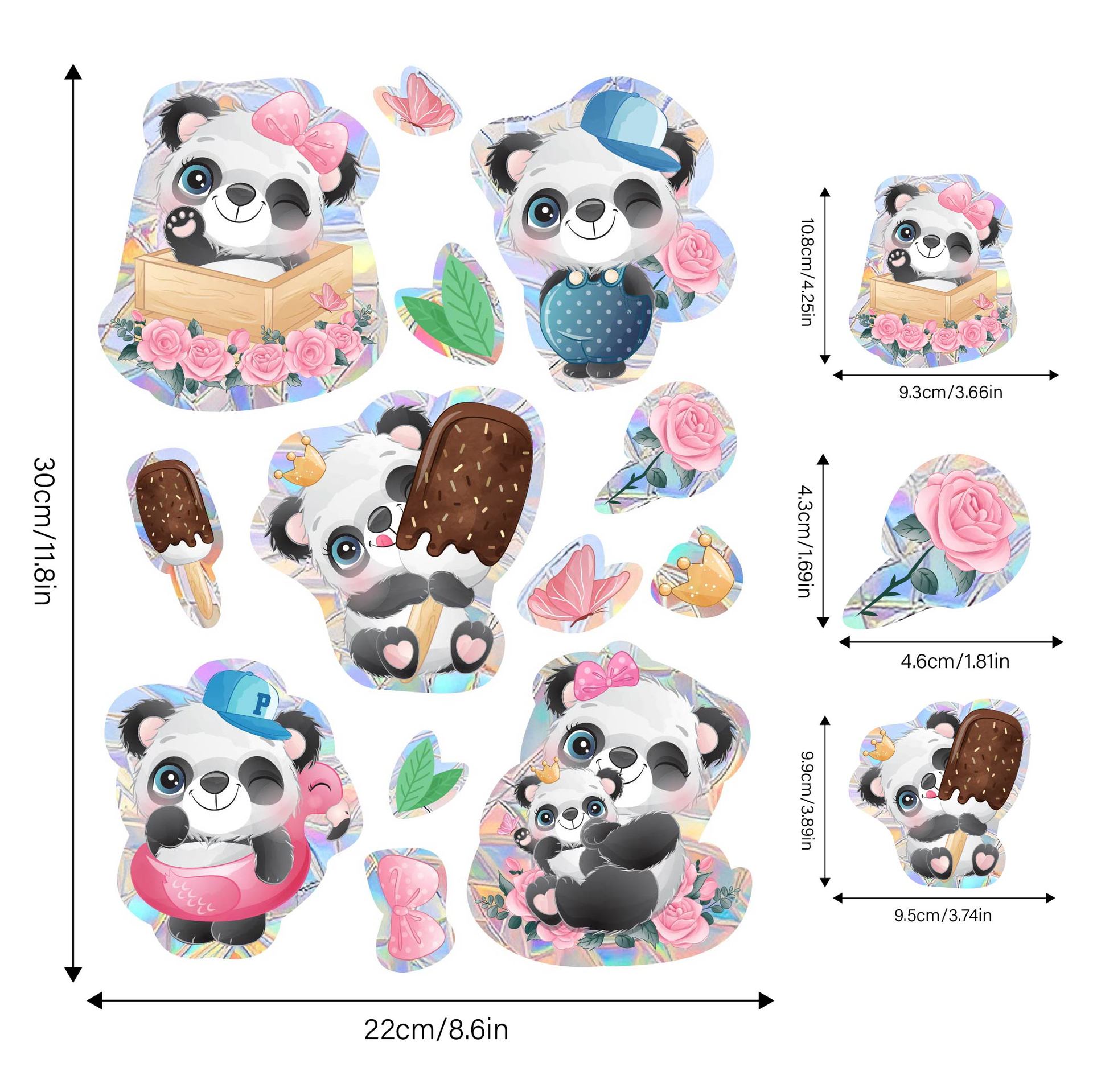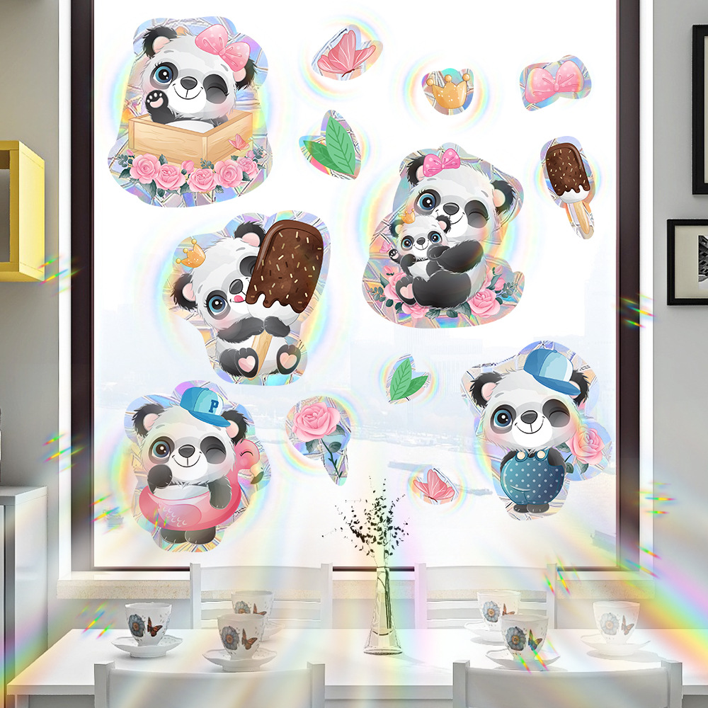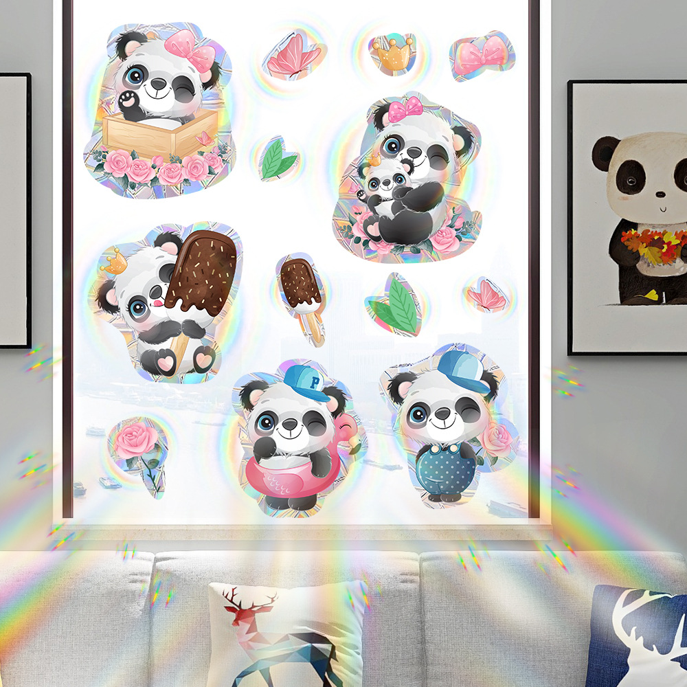 Yiyao XC2330 새로운 다채로운 귀여운 팬더 아이스크림 창 스티커 거실 문 및 윈도우 선샤인 포수 유리 정전기 스티커스토어 가기