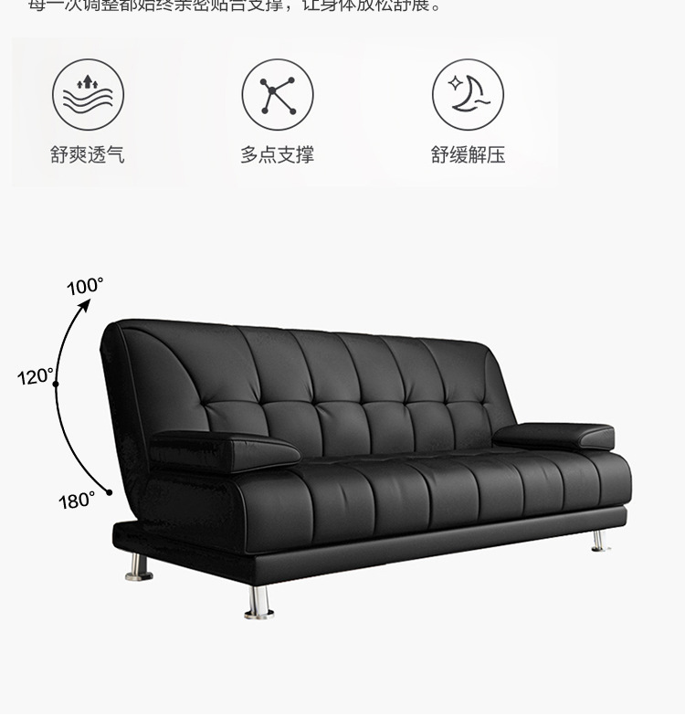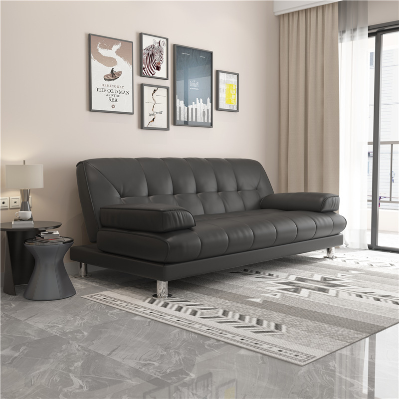 접이식 이중 목적 소파 침대 블랙 경제적 인 소파 현대 간단한 사무실 다기능 작은 아파트 가죽 아트 3 인