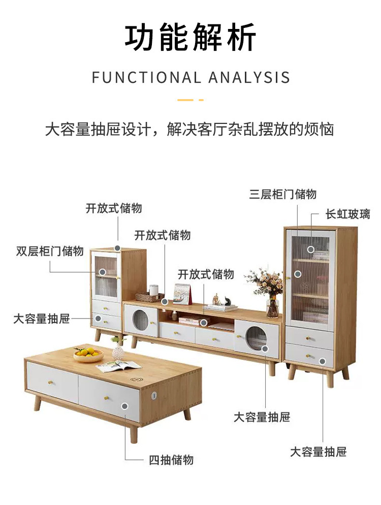 • 너도밤나무 원목 커피 테이블 + 1.5m TV 캐비닛 + 하이 캐비닛 + 기본 캐비닛
