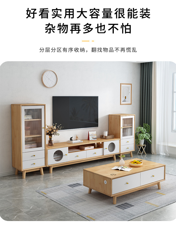 북유럽 모든 단단한 나무 TV 내각 커피 테이블 조합 현대 간단한 홈 거실 바닥 캐비닛 작은 아파트 배경 벽 캐비닛