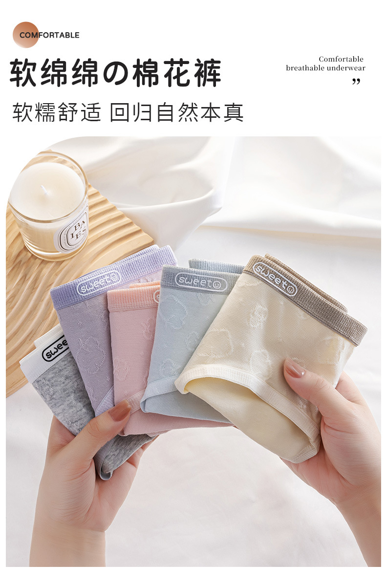 비 마킹 소프트 코튼 속옷 여성용 퓨어 코튼 통기성 바닥 크로트 미드 웨이스트 어린 소녀의 봄과 여름 얇은 통기성 삼각형 반바지스토어 가기