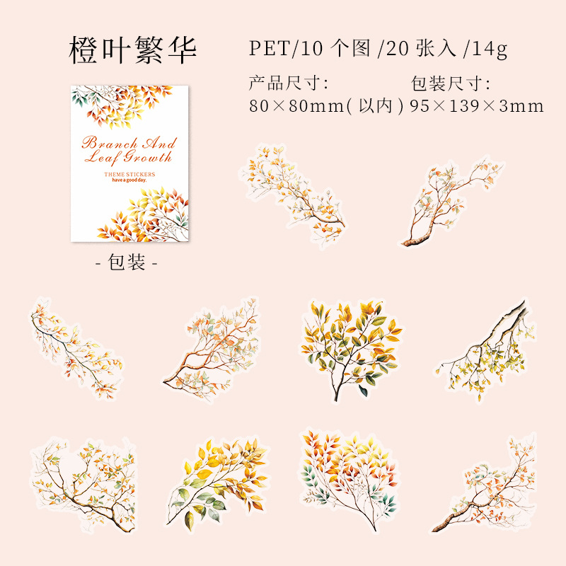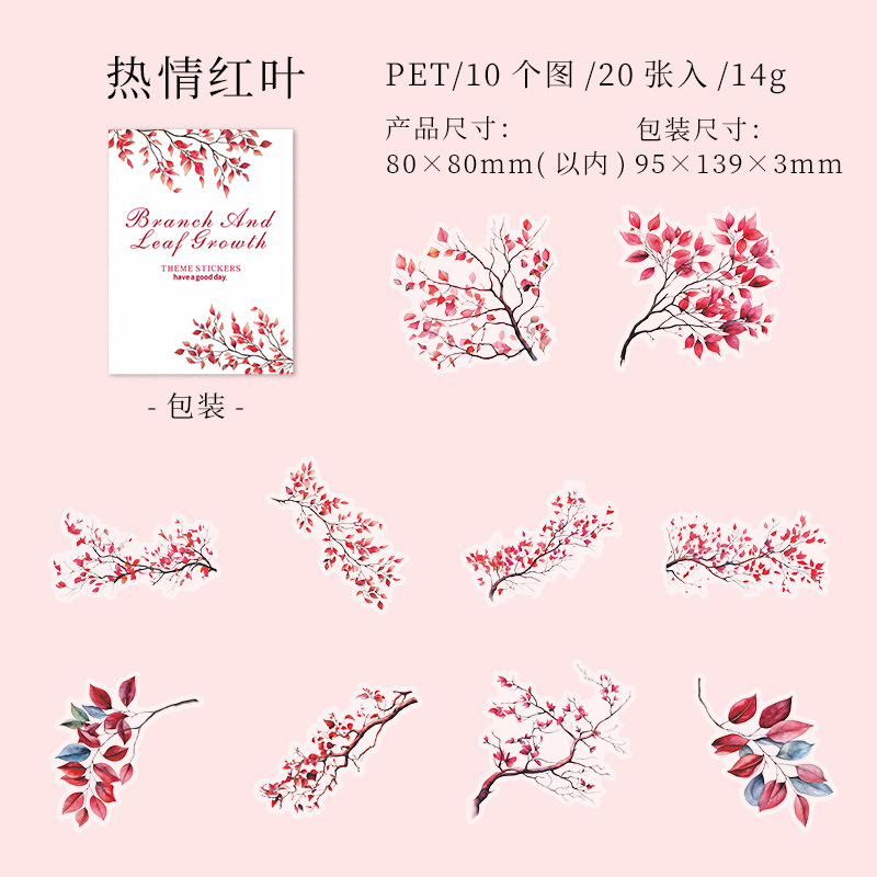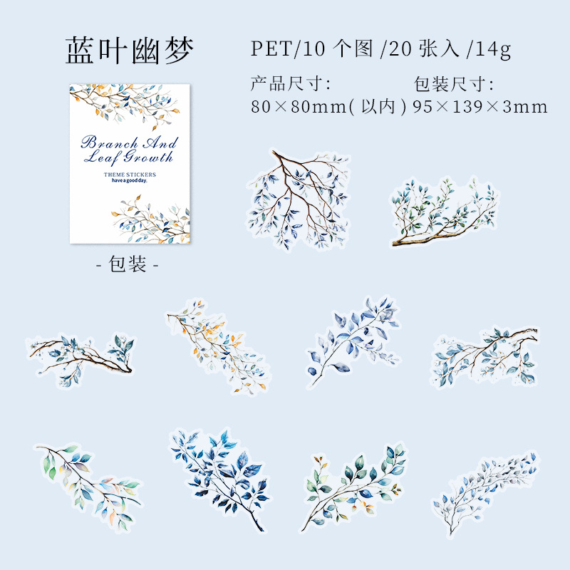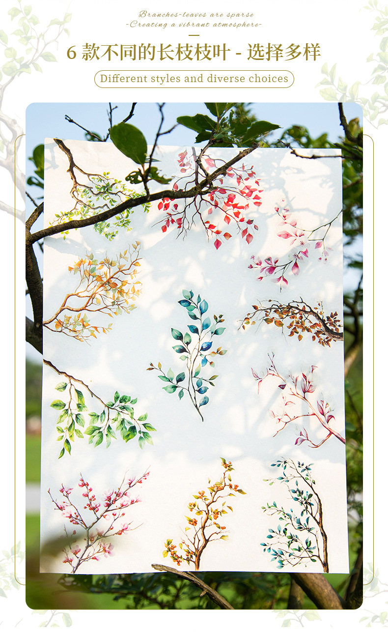 가지와 잎 성장 애완 동물 스티커 예술적 신선한 식물 잎 가지 큰 크기 모든 일치 손 계정 기본 장식 스티커스토어 가기