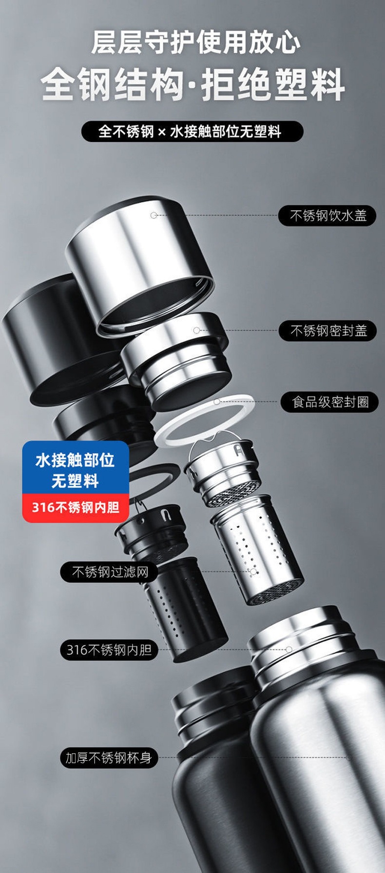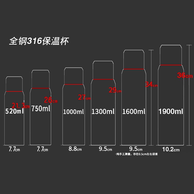 새로운 모든 강철 316 스테인레스 스틸 대용량 보온병 컵 차 창고 휴대용 스포츠 주전자 자동차 여행 냄비스토어 가기