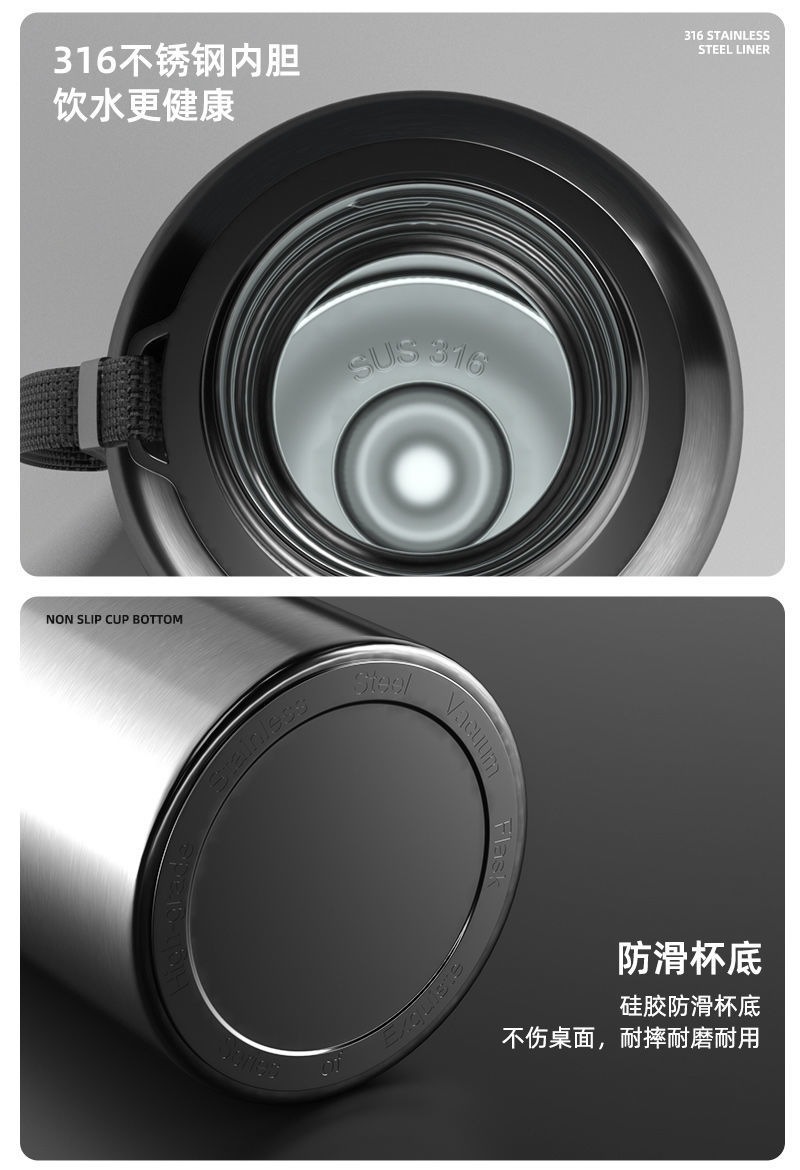새로운 모든 강철 316 스테인레스 스틸 대용량 보온병 컵 차 창고 휴대용 스포츠 주전자 자동차 여행 냄비