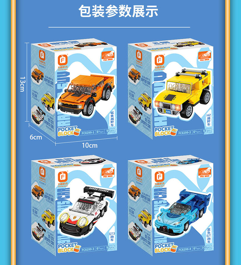 • 팡 오렌지 8299 Huili 빌딩 블록 자동차 6 대 세트