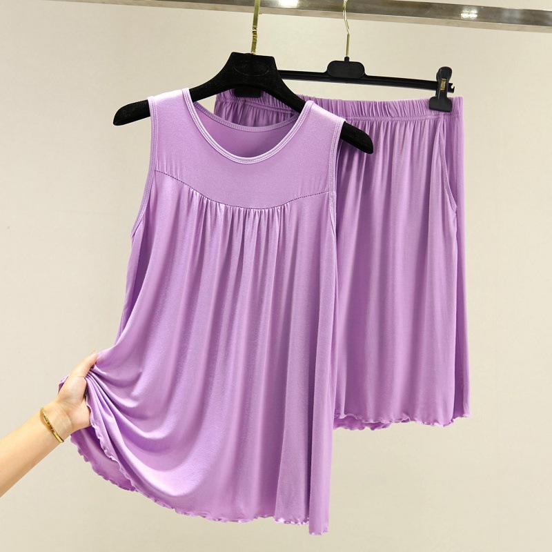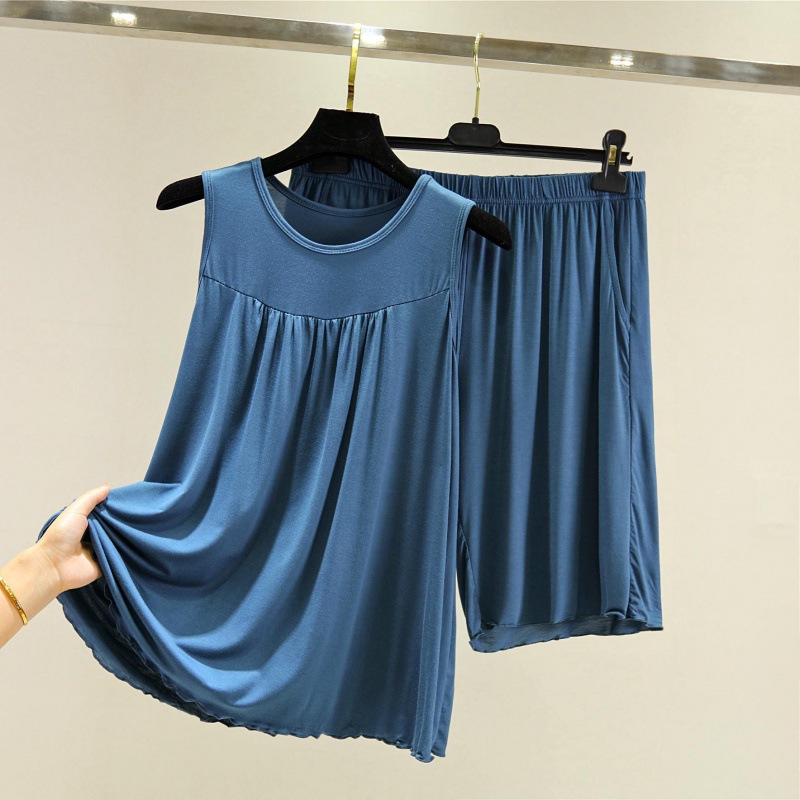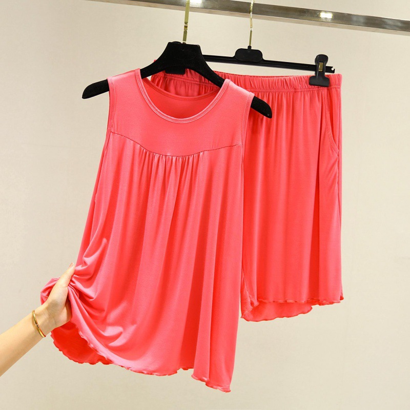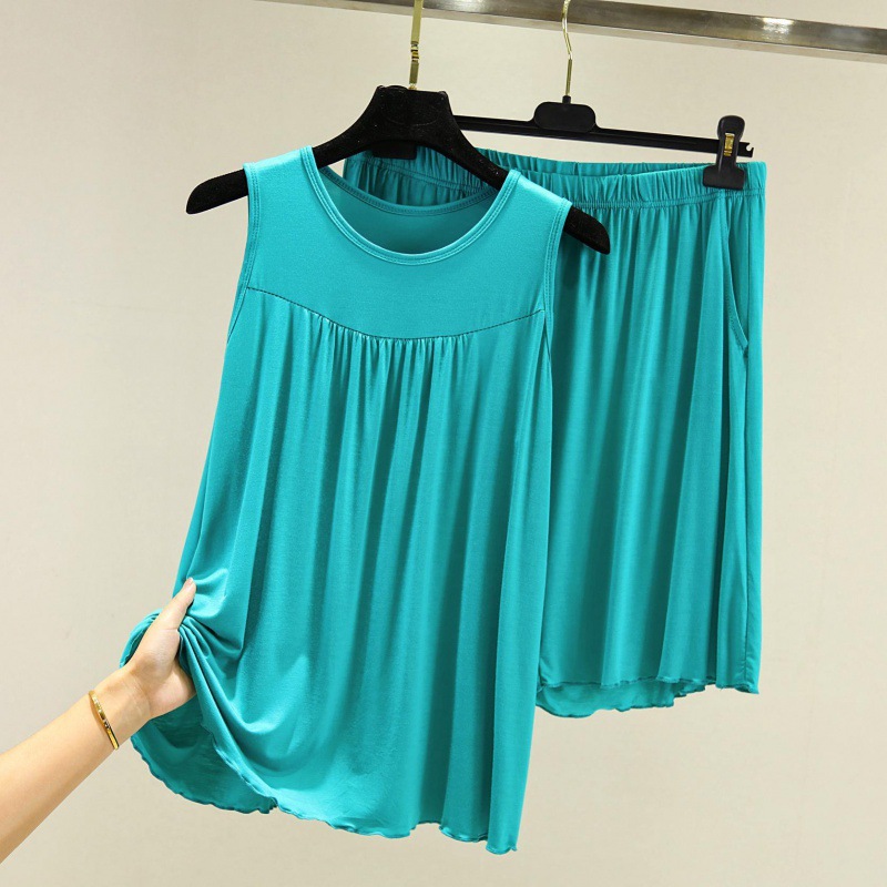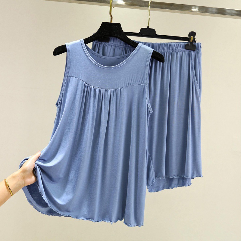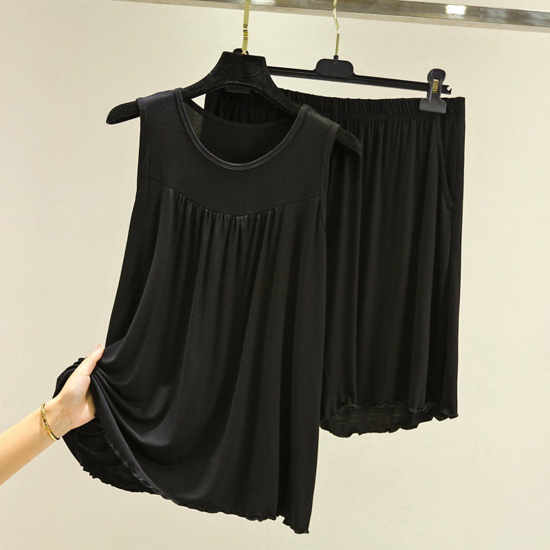 모달 조끼 반바지 세트 여성 여름 느슨한 얇은 플러스 사이즈 민소매 기본 탑 홈 파자마 투피스 세트