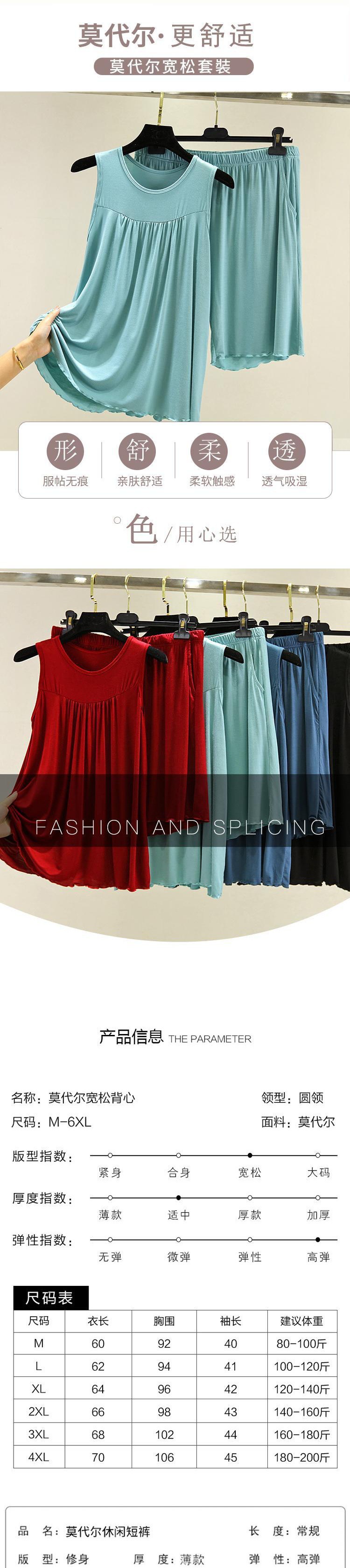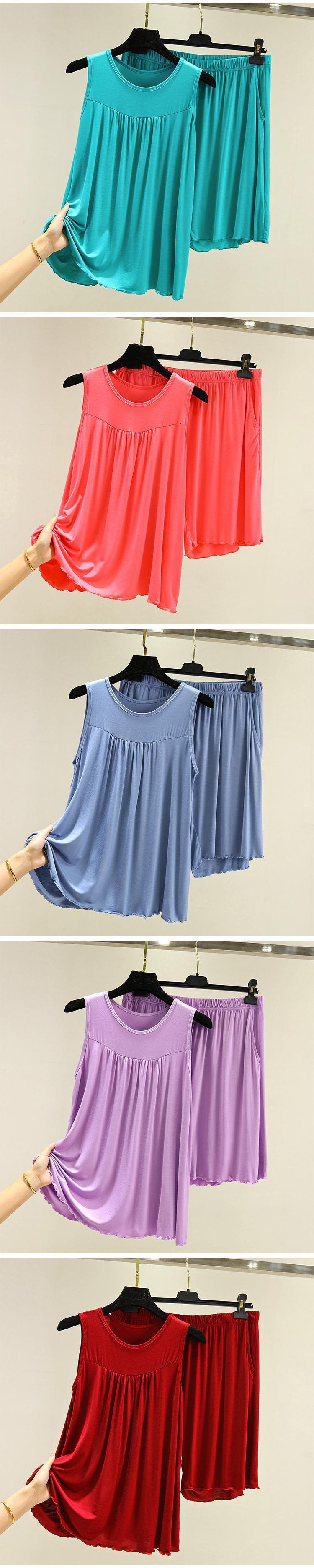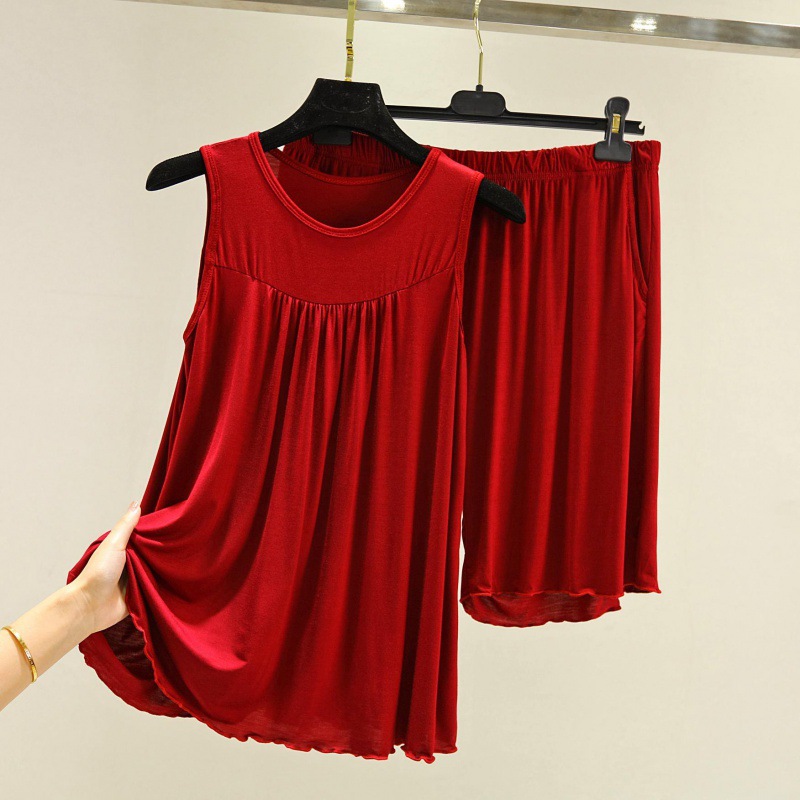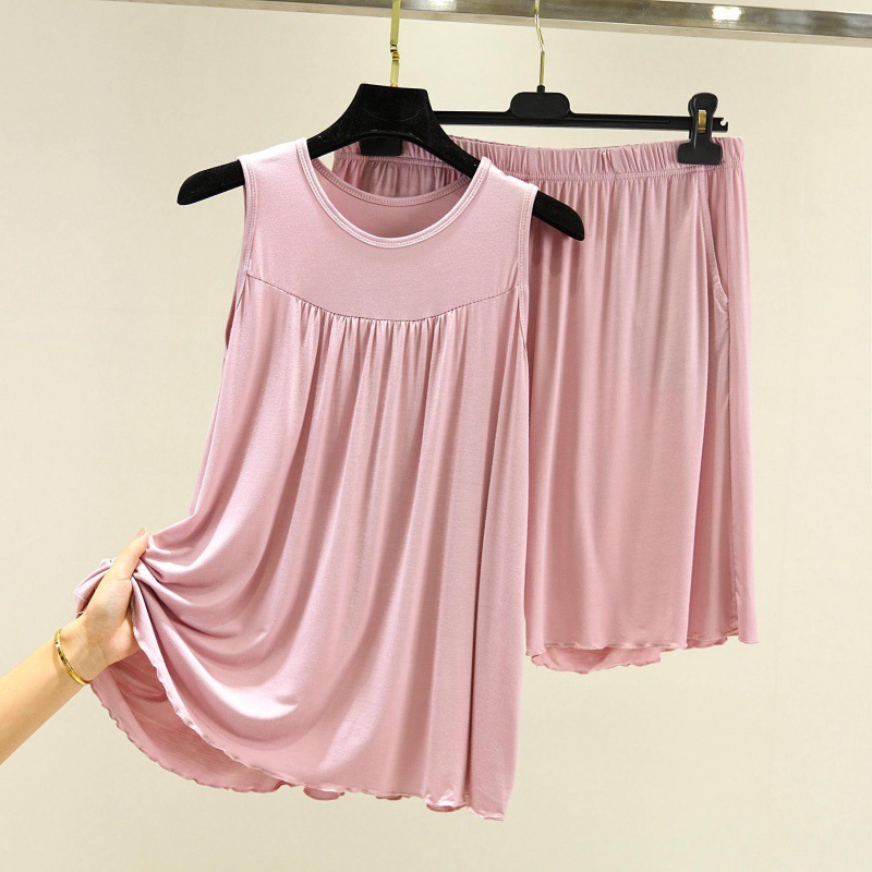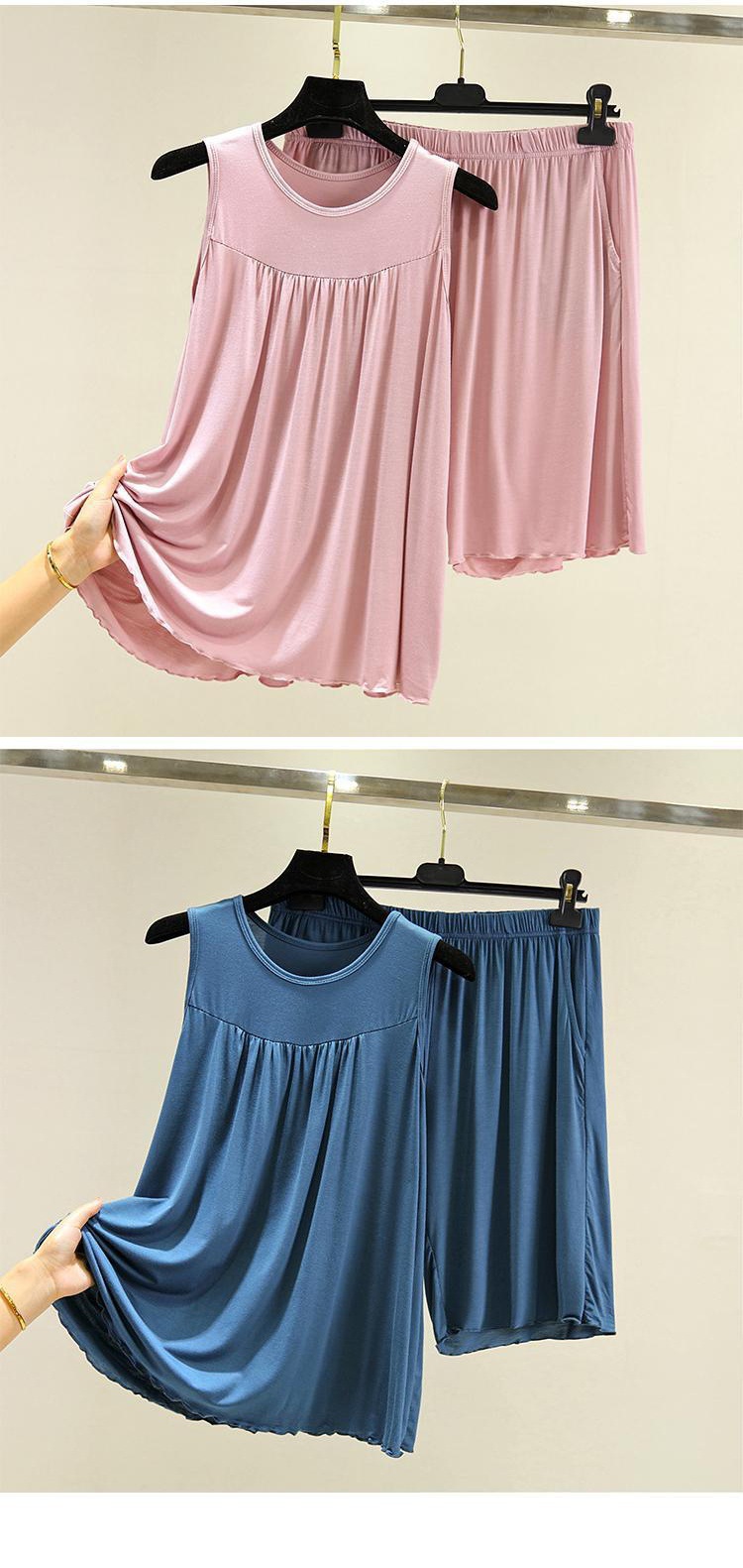 모달 조끼 반바지 세트 여성 여름 느슨한 얇은 플러스 사이즈 민소매 기본 탑 홈 파자마 투피스 세트
