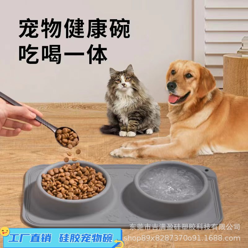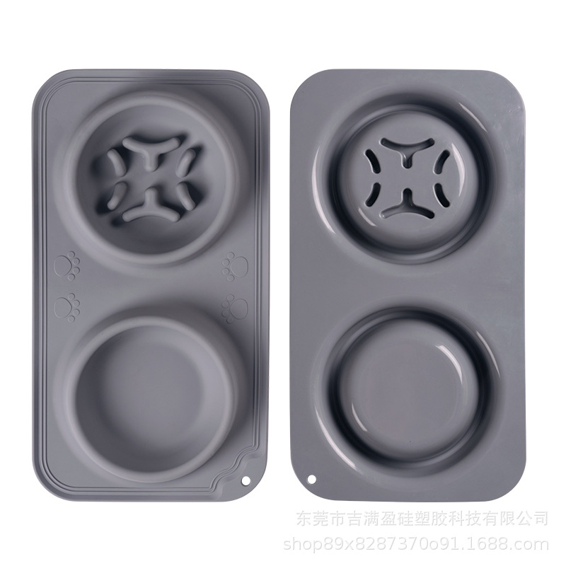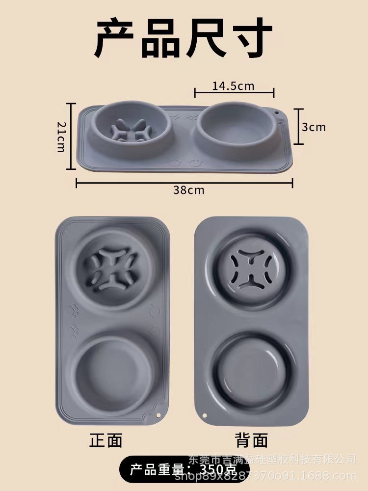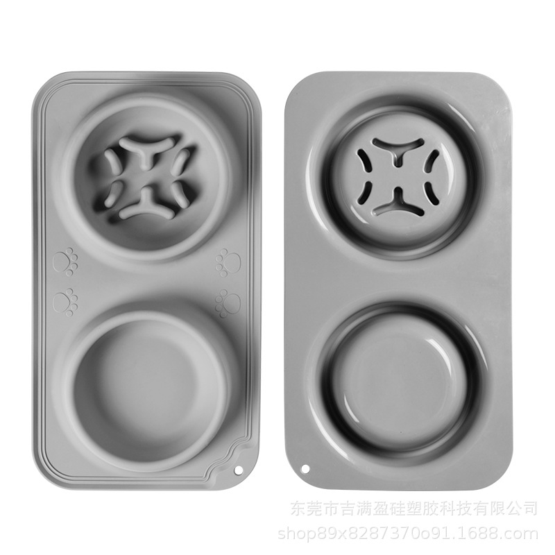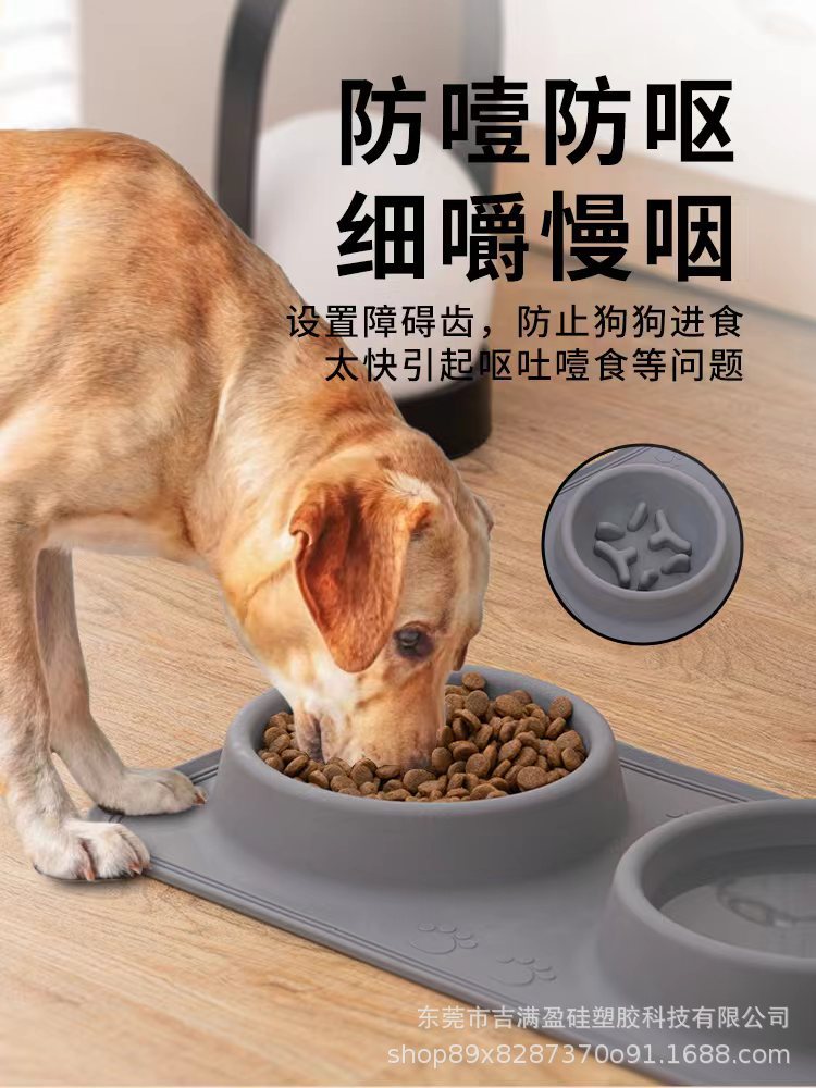 애완동물 실리콘 그릇, 물 마시기와 먹이주기 일체형 이중 그릇, 미끄럼 방지, 누수 방지, 걸이형, 강아지와 고양이용 대용량 슬로우 푸드 그릇스토어 가기