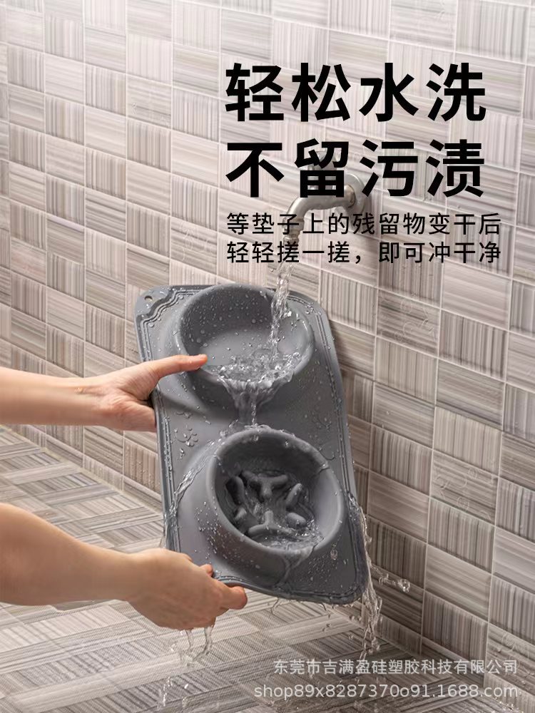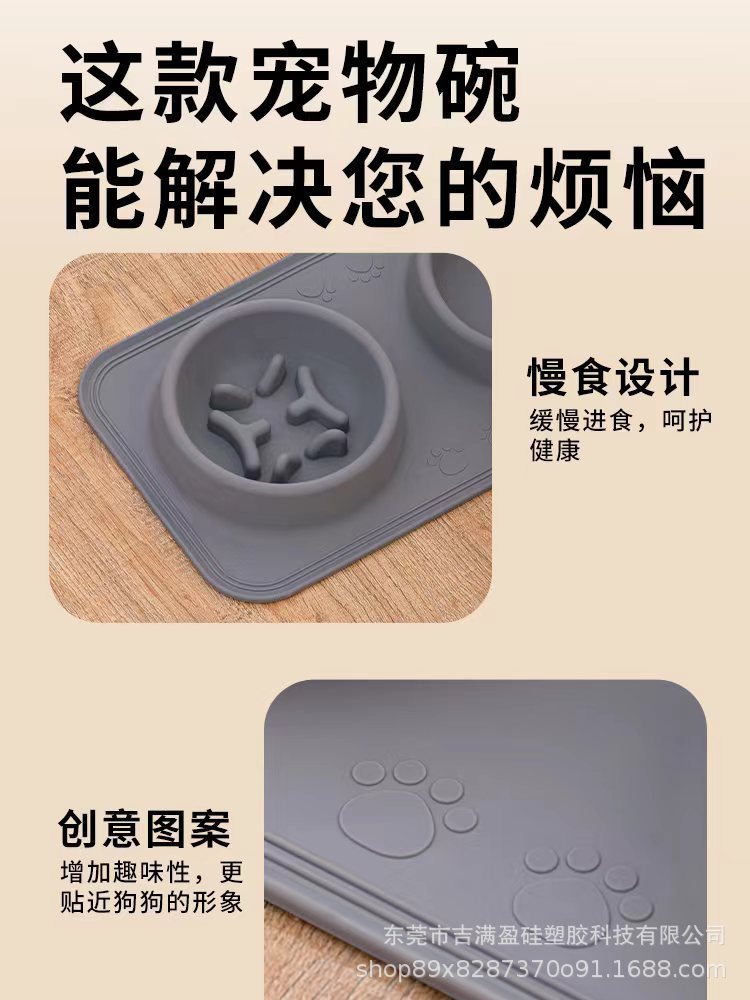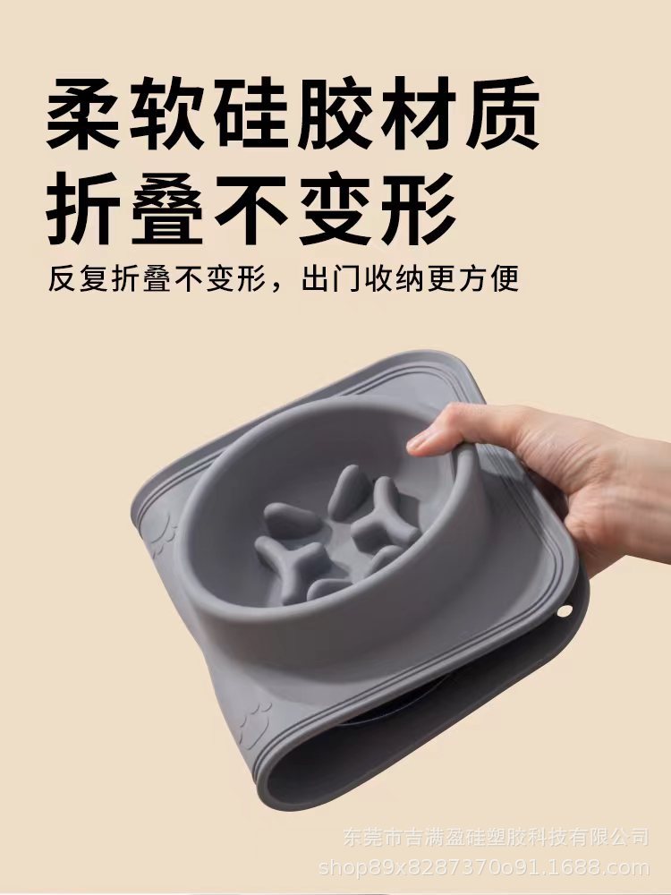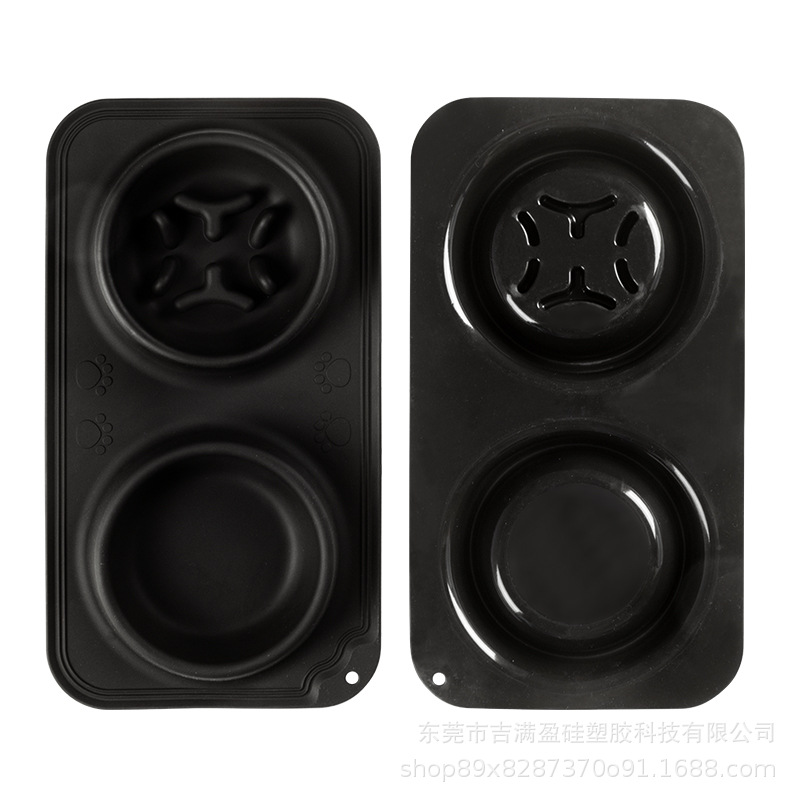 애완동물 실리콘 그릇, 물 마시기와 먹이주기 일체형 이중 그릇, 미끄럼 방지, 누수 방지, 걸이형, 강아지와 고양이용 대용량 슬로우 푸드 그릇스토어 가기