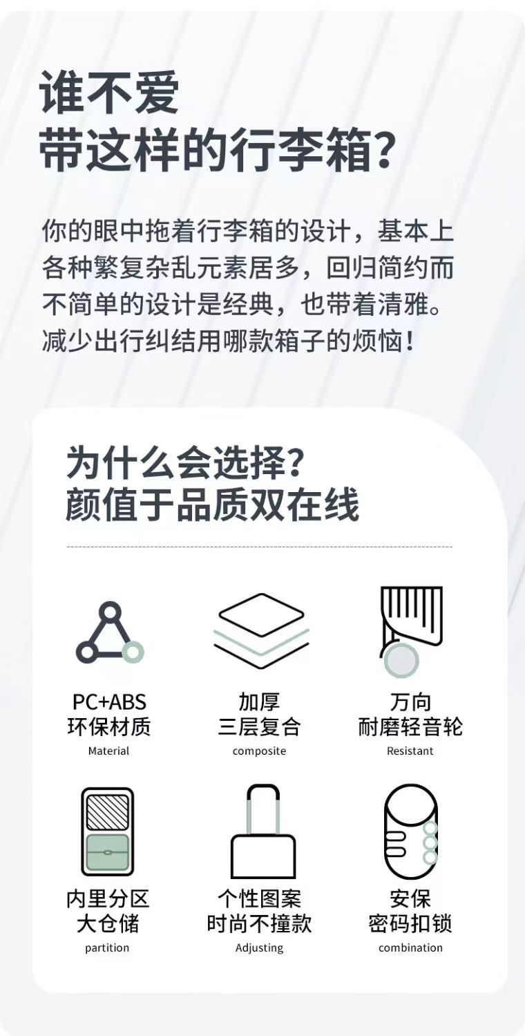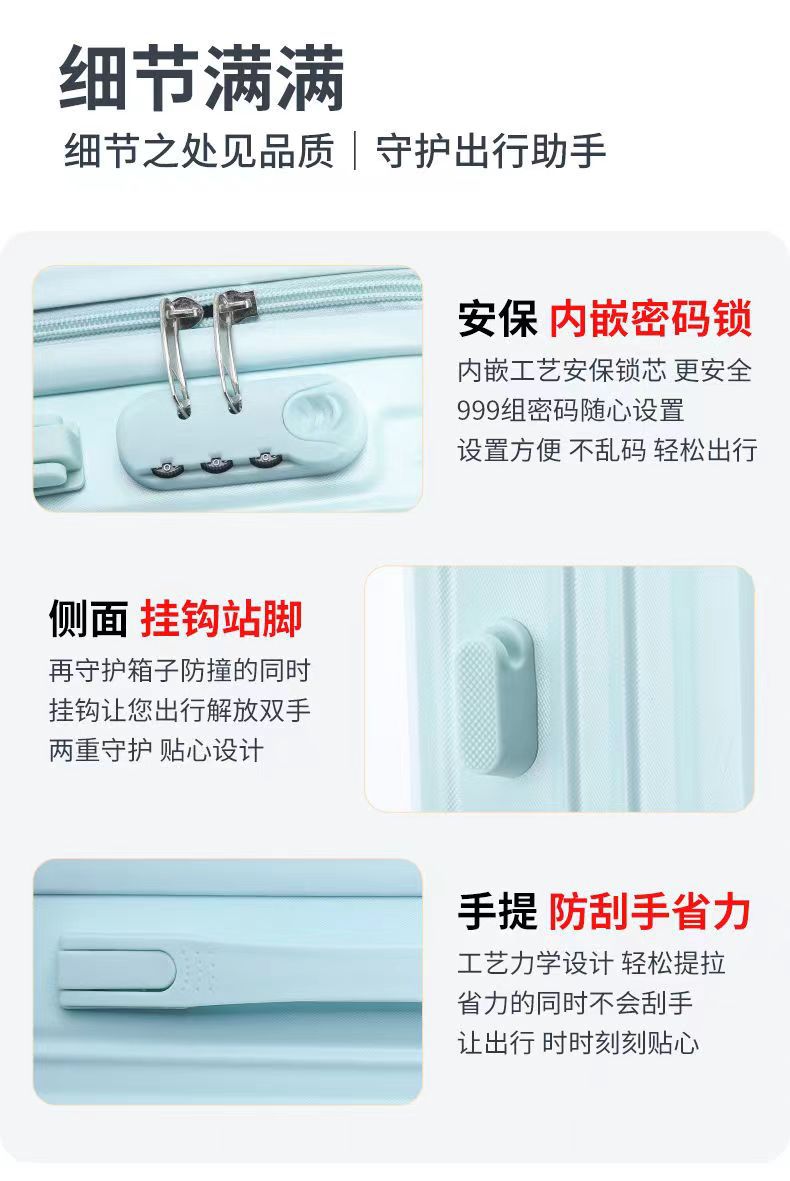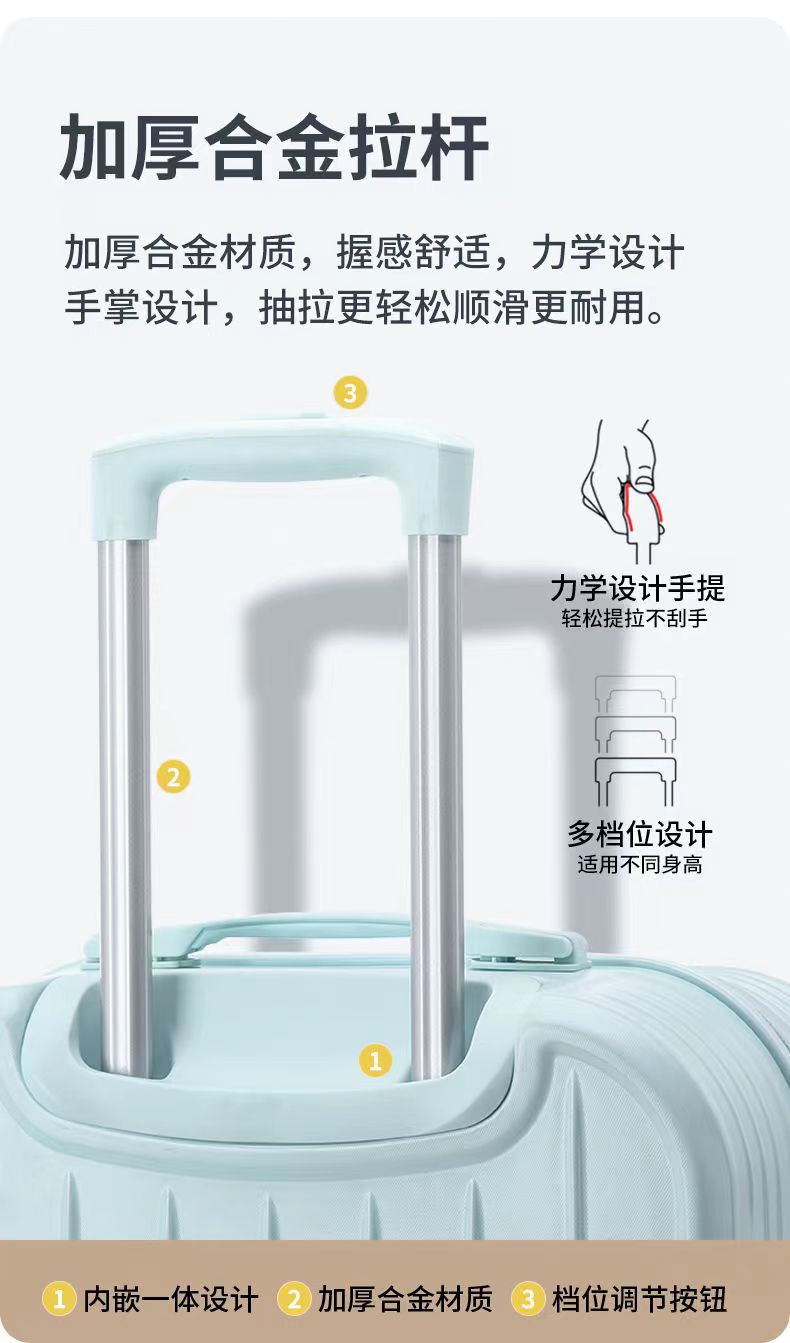 2025 패션 Xiaoqing 새로운 수하물 두꺼운 후크 트롤리 케이스 학생 가방 음소거 휠 압축 및 착용 방지