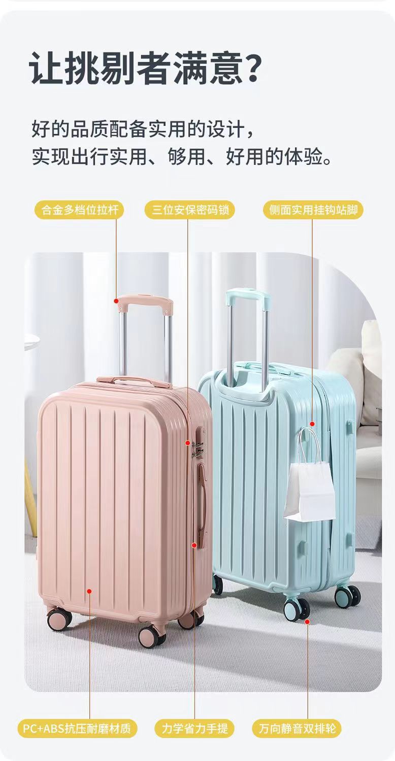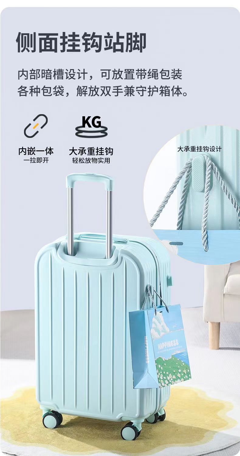 2025 패션 Xiaoqing 새로운 수하물 두꺼운 후크 트롤리 케이스 학생 가방 음소거 휠 압축 및 착용 방지스토어 가기