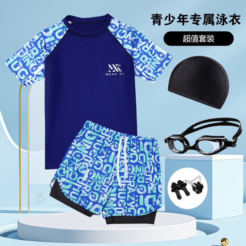 소년을위한 어린이 수영 세트 중 · 대형 어린이 청소년 중학교 소년 전문 빠른 건조 수영 트렁크 뚱뚱한 소년 세트