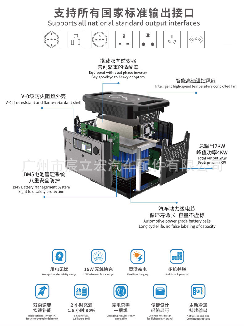 Treeligo 휴대용 야외 모바일 전원 공급 장치 220v 차량 에너지 저장 대용량 리튬 배터리 2000W 주차