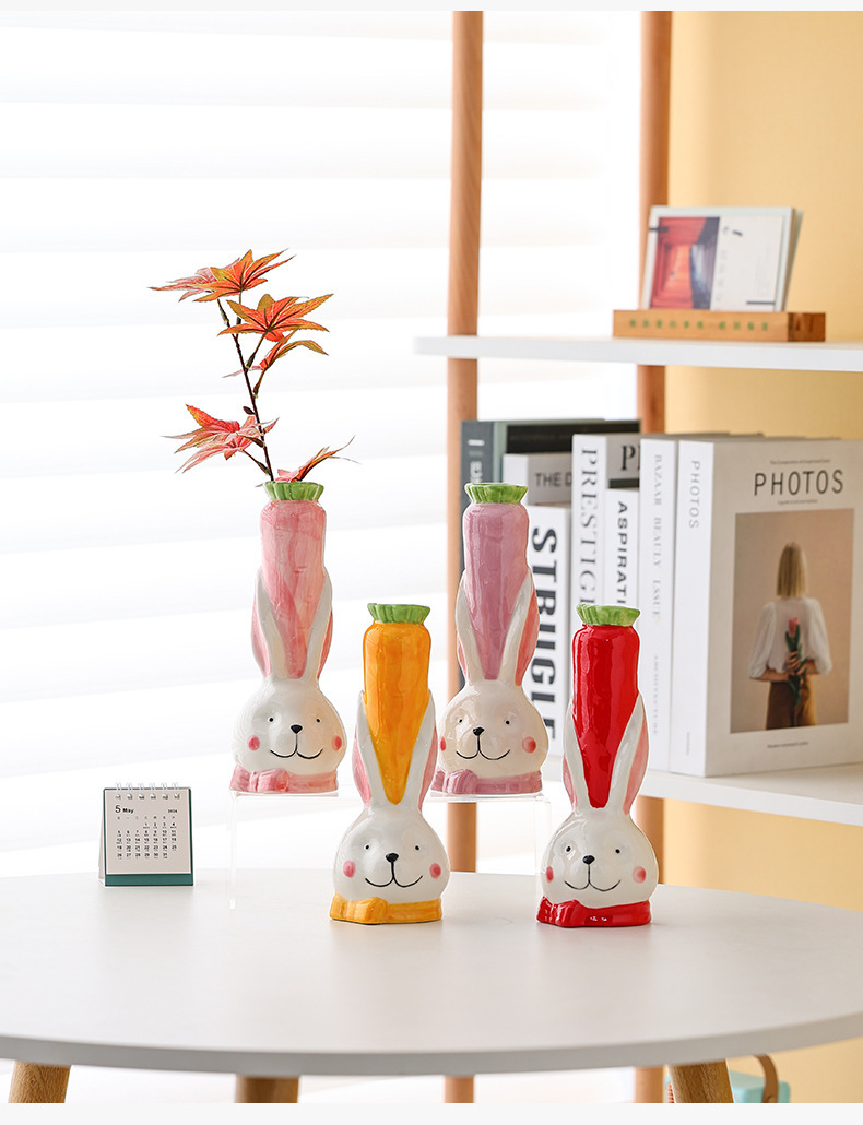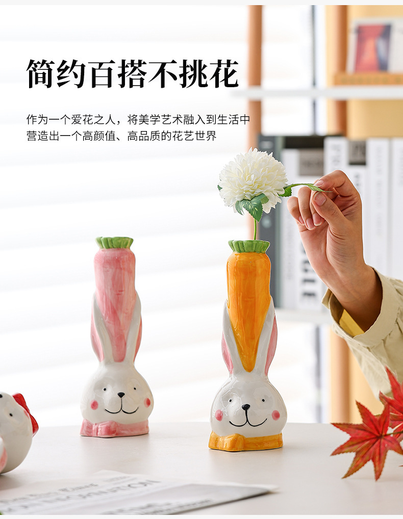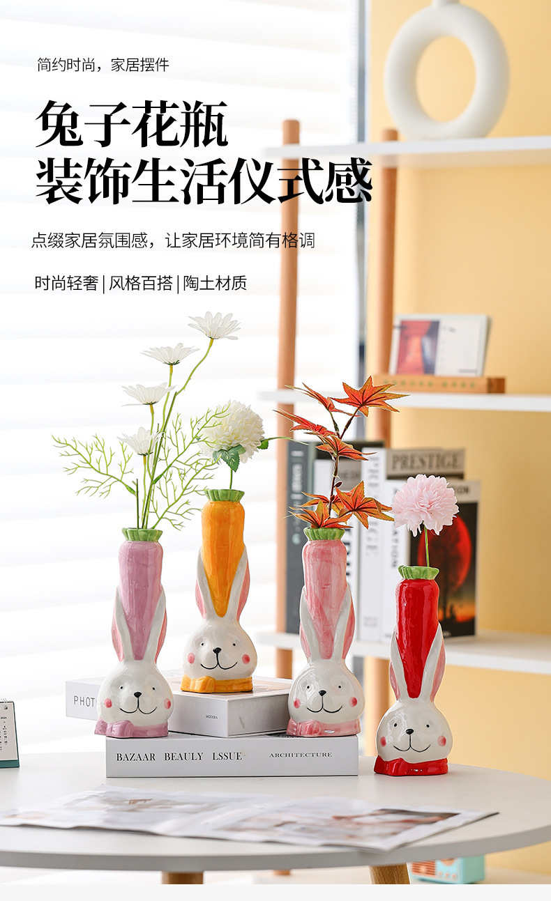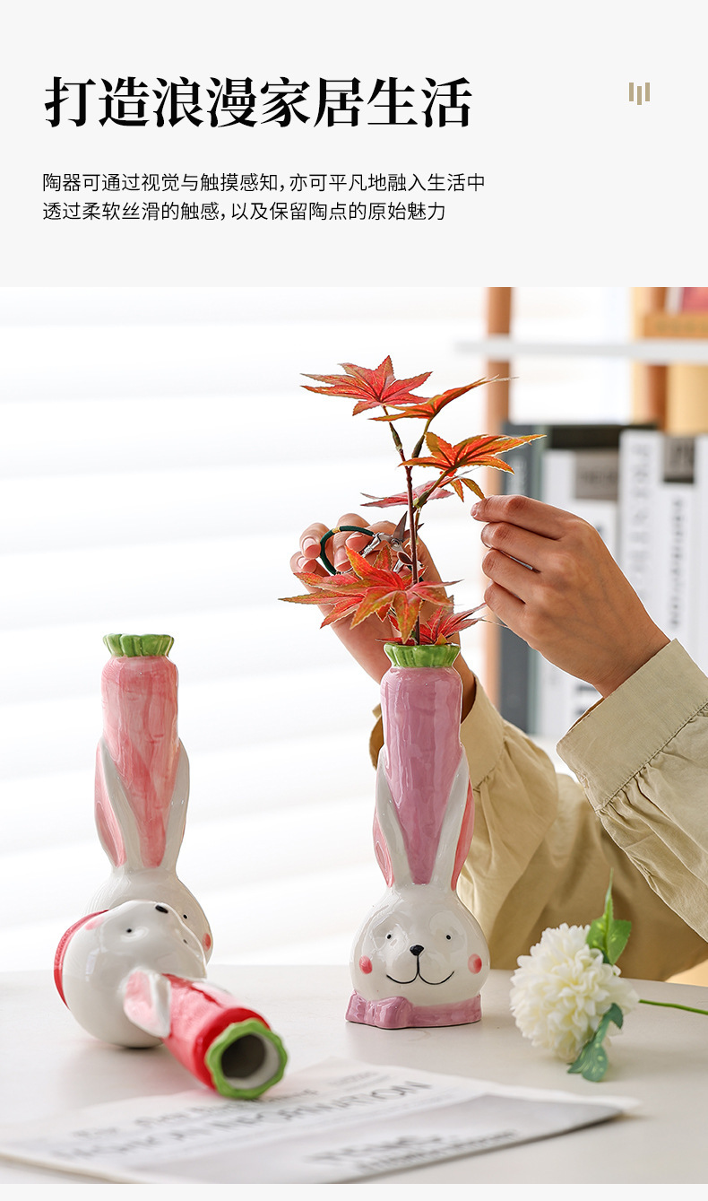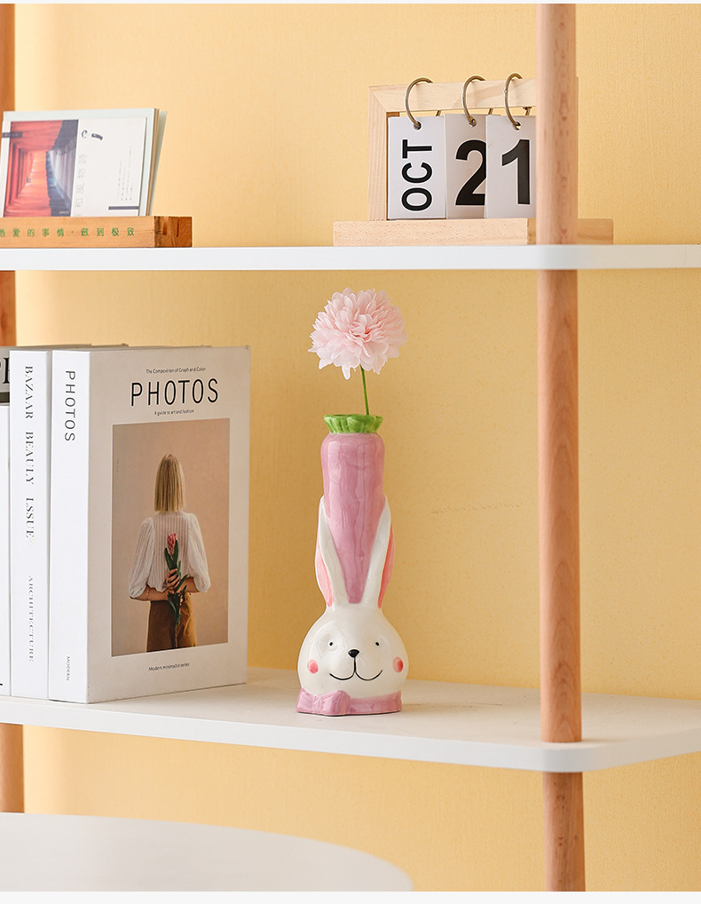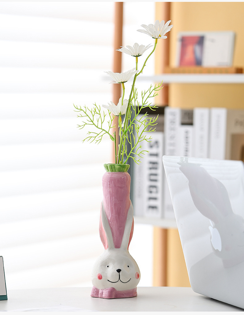 창조적 인 토끼 세라믹 꽃병 말린 꽃 장식 꽃 장치 틈새 새 사무실 거실 책 데스크탑 꽃 장식품