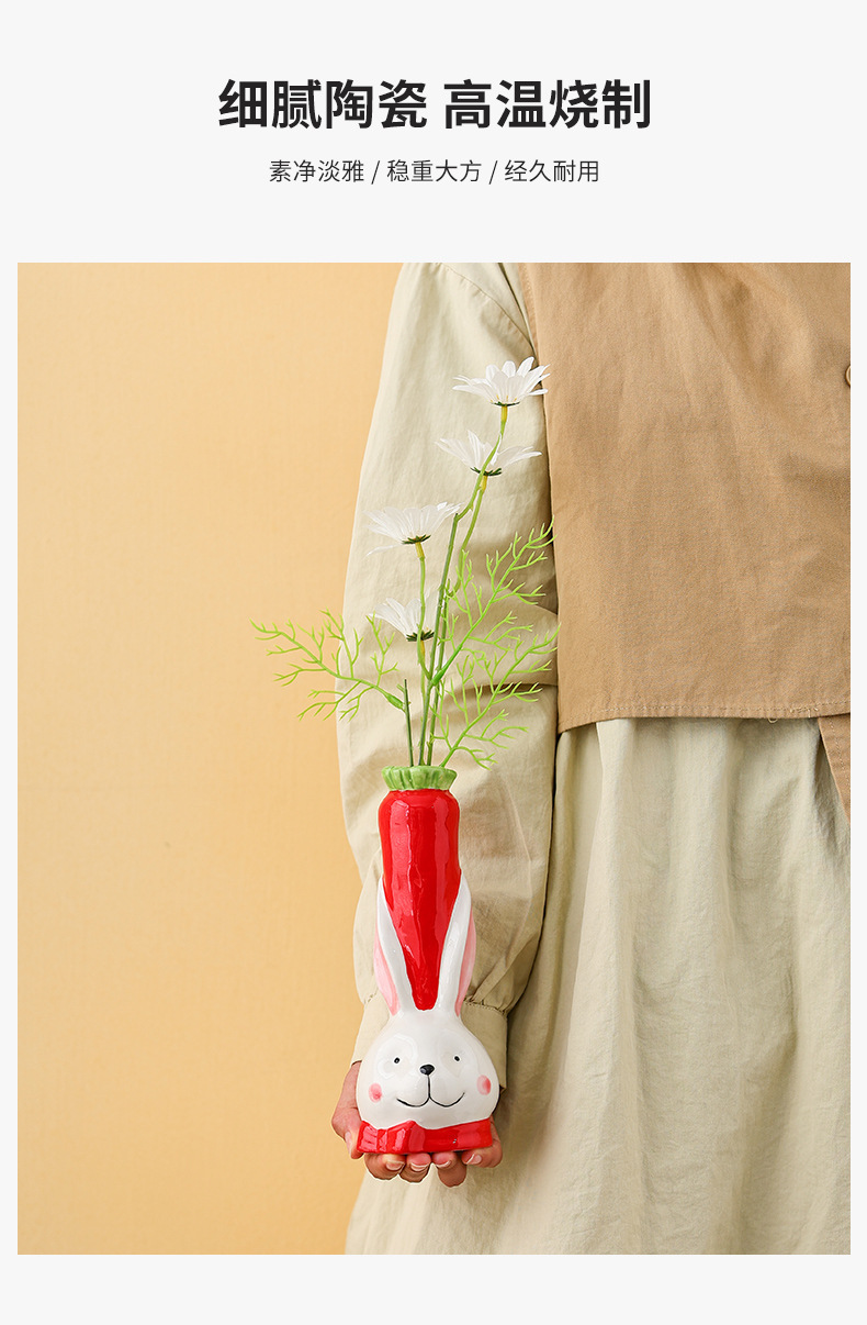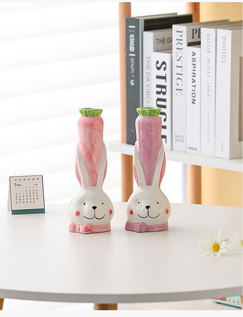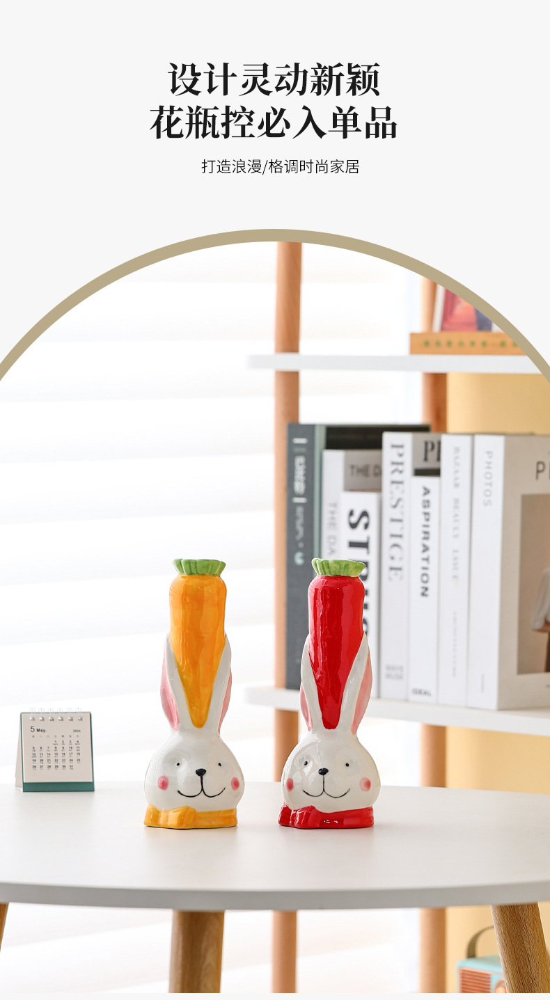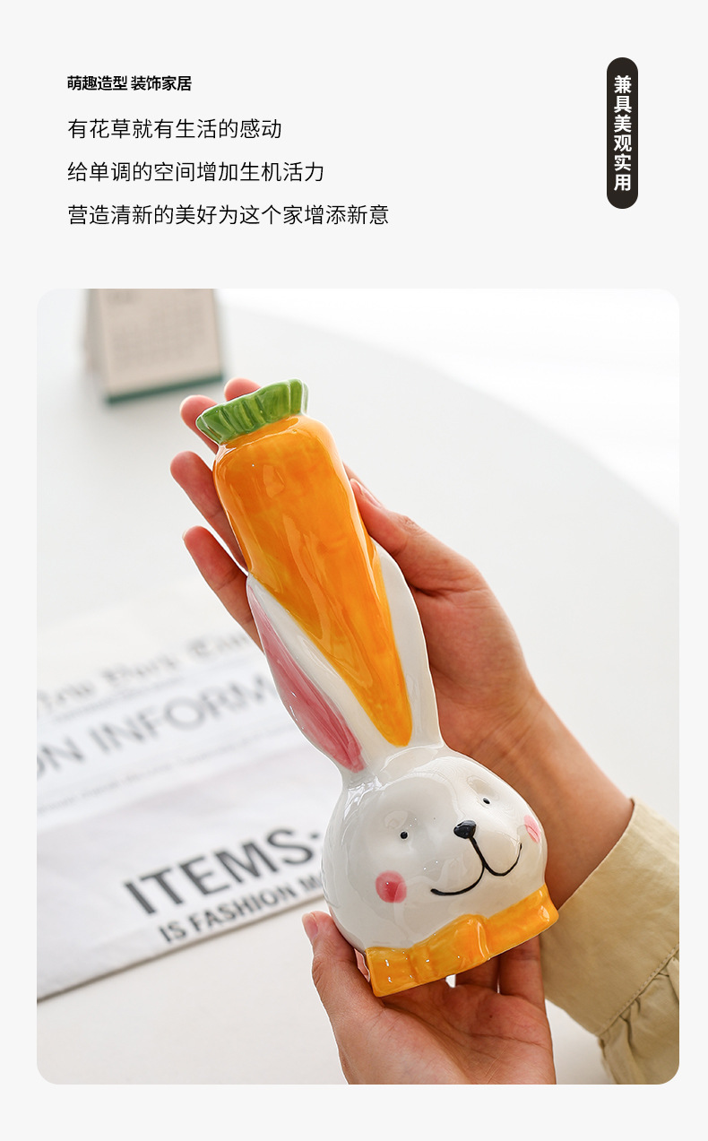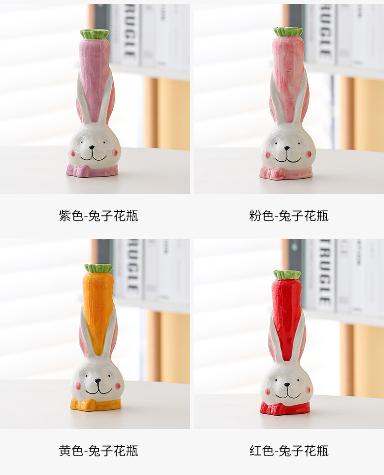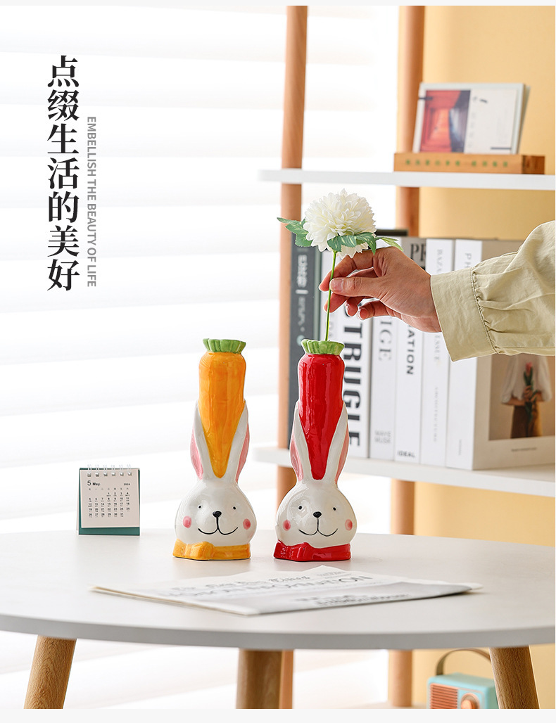 창조적 인 토끼 세라믹 꽃병 말린 꽃 장식 꽃 장치 틈새 새 사무실 거실 책 데스크탑 꽃 장식품
