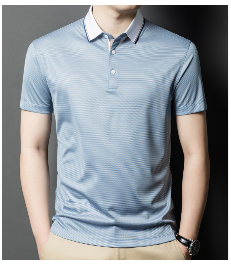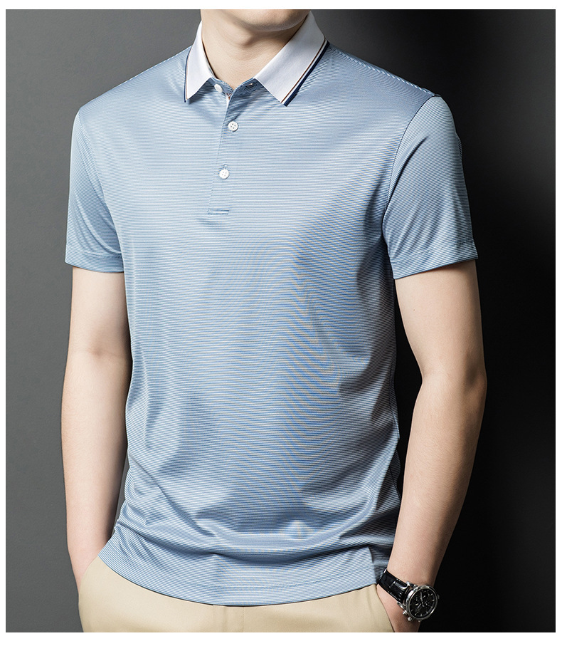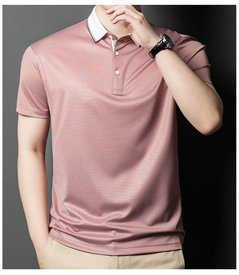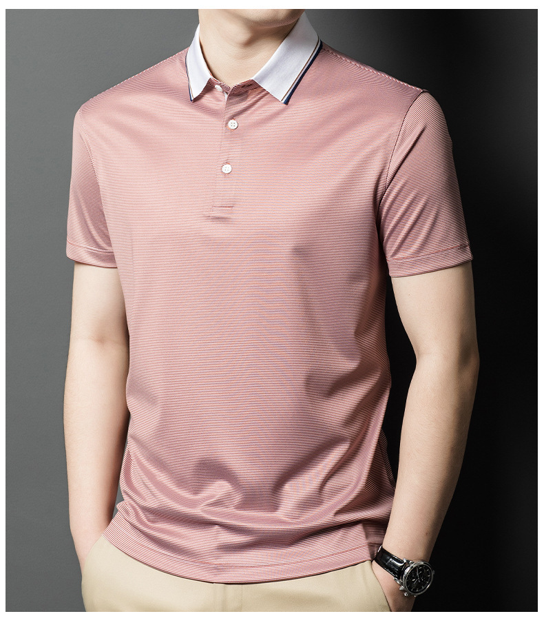 새로운 반팔 티셔츠 남성용 스트라이프 탑 여름 얇은 폴로 셔츠 유행 옷깃 티셔츠 라이트 럭셔리 남성 패션