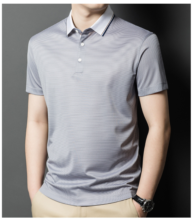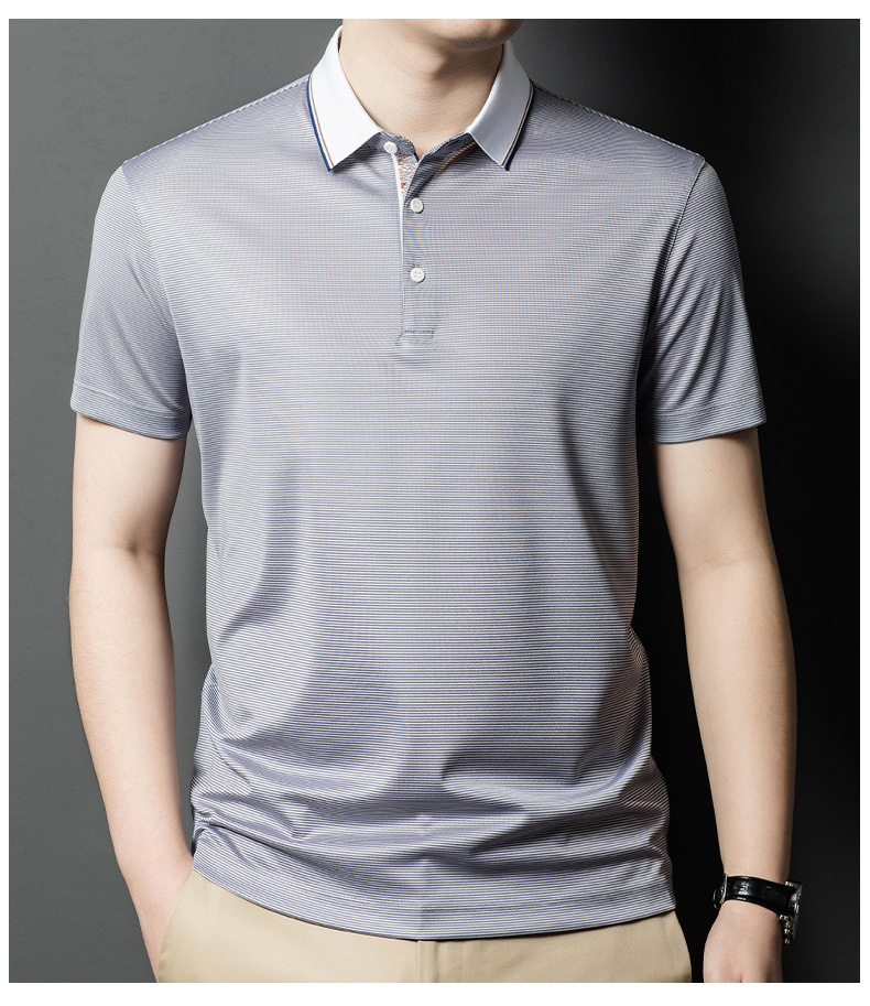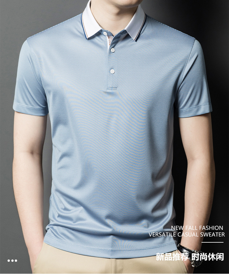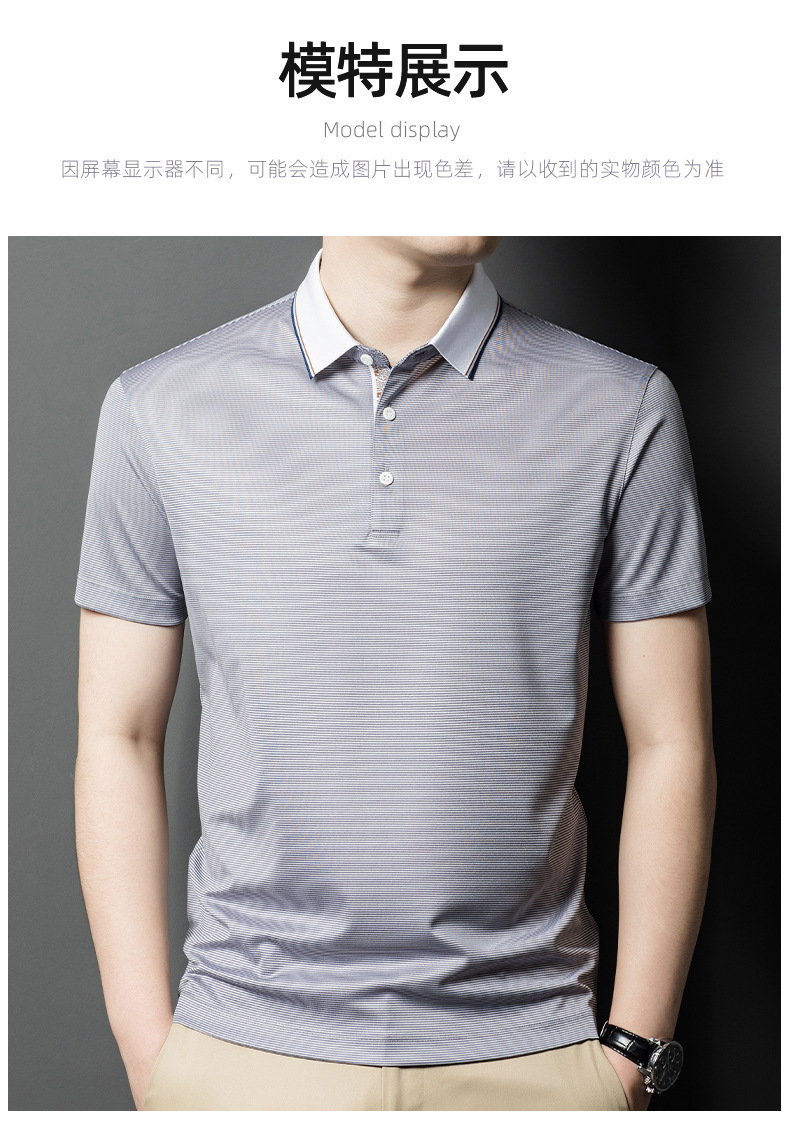 新款短袖t恤男式条纹上衣夏季薄款Polo衫时尚翻领体恤轻奢男装潮