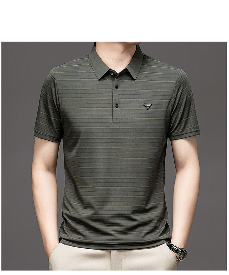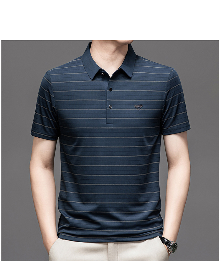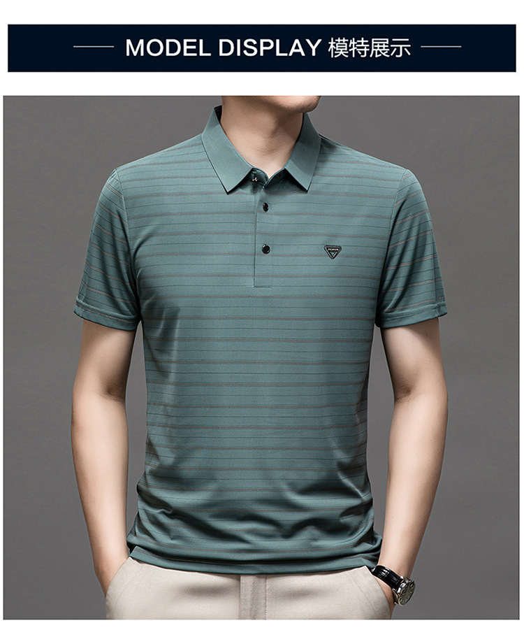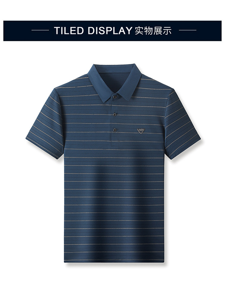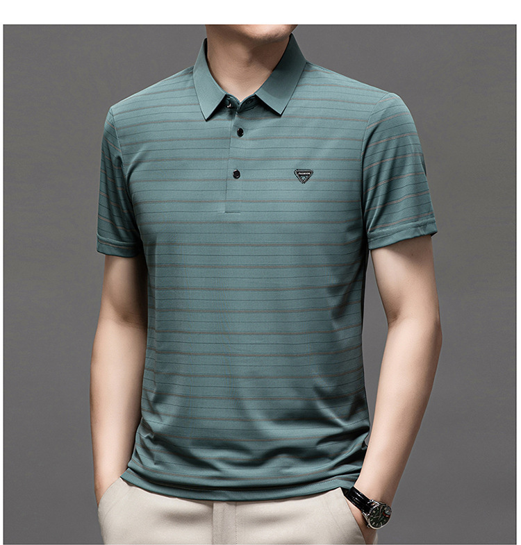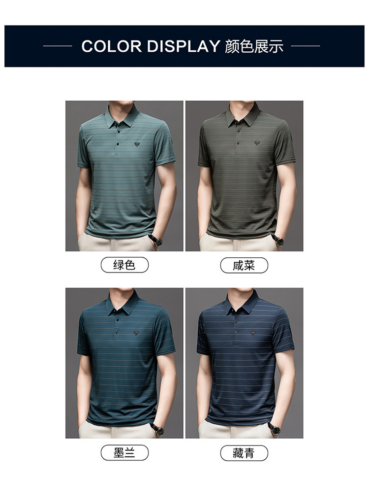 아이스 실크 얇은 줄무늬 반팔 폴로 셔츠 남자 2024 여름 느슨한 캐주얼 랩 티셔츠 중년 및 노인 아빠스토어 가기