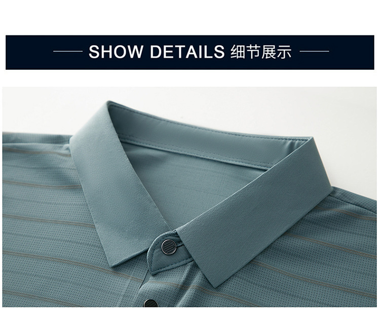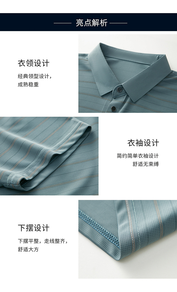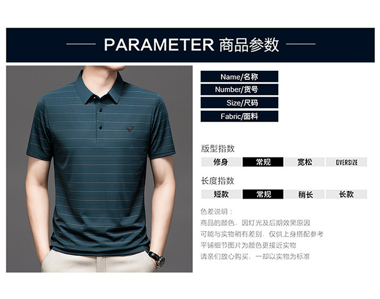 冰丝薄款条纹短袖polo衫男装2024夏季中老年爸爸宽松休闲翻领t恤