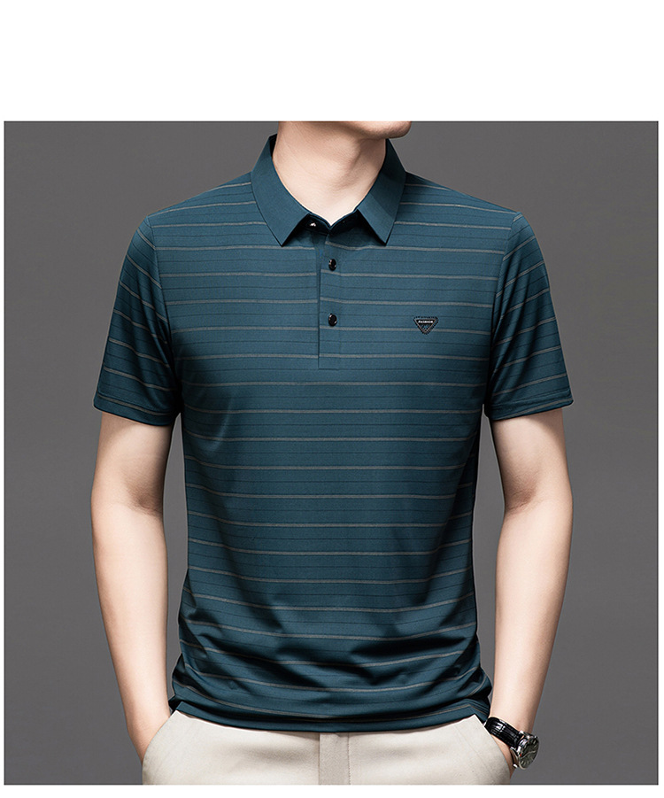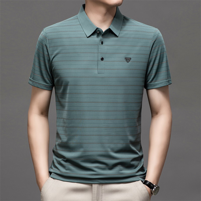 아이스 실크 얇은 줄무늬 반팔 폴로 셔츠 남자 2024 여름 느슨한 캐주얼 랩 티셔츠 중년 및 노인 아빠