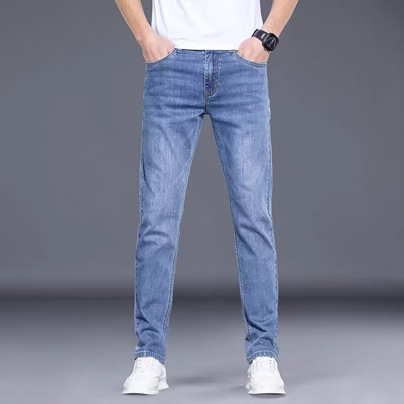 엄선된 청바지 남성 슬림 스트레이트 레그 2025 여름 얇은 스트레치 하이 엔드 트렌디 캐주얼 올 매치 롱 팬츠스토어 가기