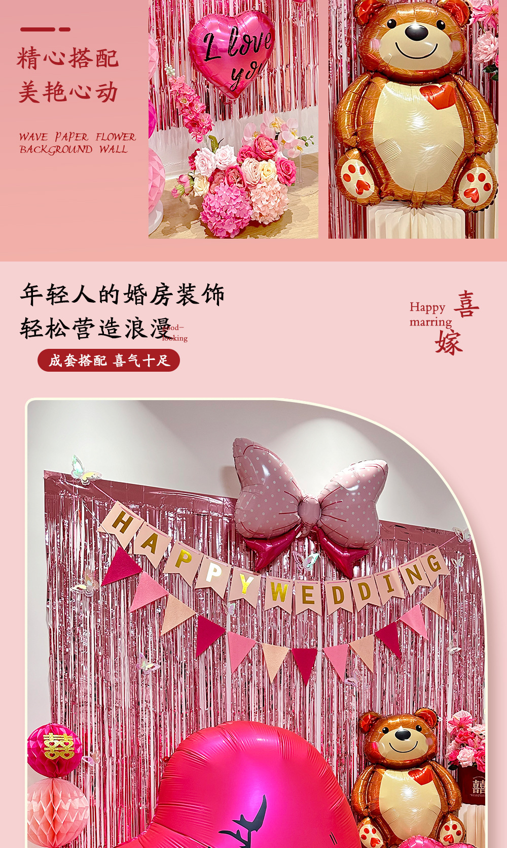 남자와 여자를위한 결혼식 레이아웃 광장 침실 거실 꽃 리본 매달려 장식 웨딩 분위기 사진 배경 장식 세트스토어 가기
