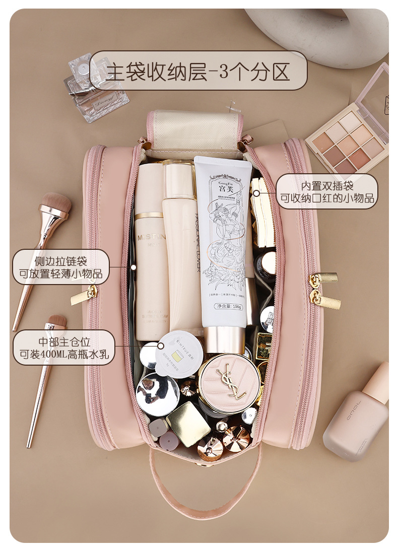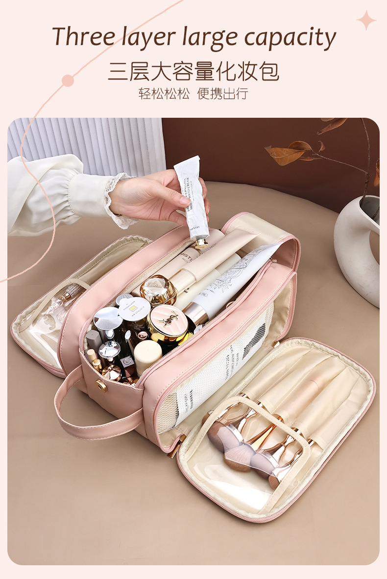 더블 지퍼 휴대용 화장품 가방, 고급스럽고 고급스러운 화장품 보관 가방, 새로운 PU 3층 여행스토어 가기