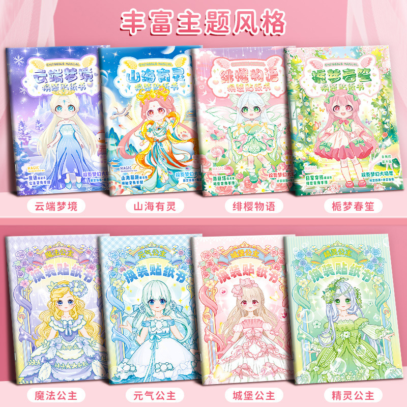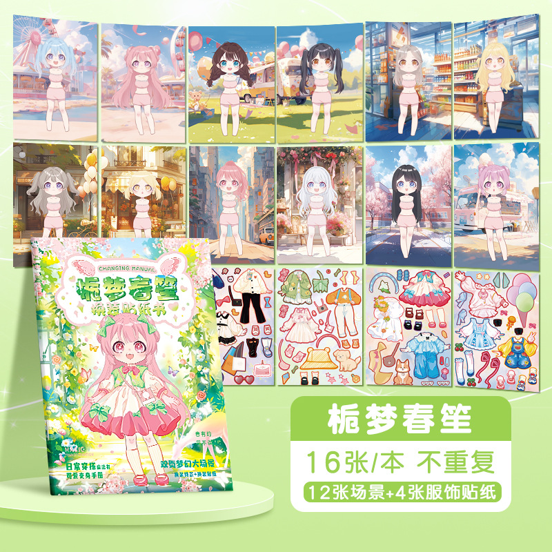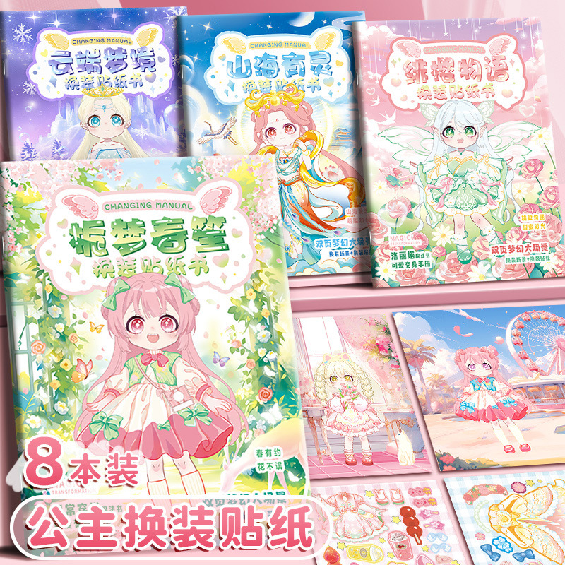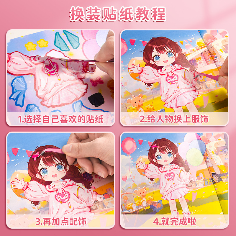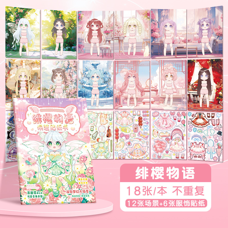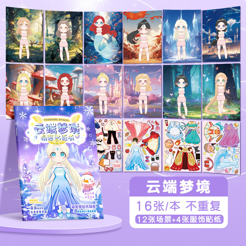 원피스 업 스티커 소녀 어린이 원피스 공주 장난감 핸드북 그림 스티커 장식 카드 메이크업 핸드북 메이크업 변경 메이크업스토어 가기