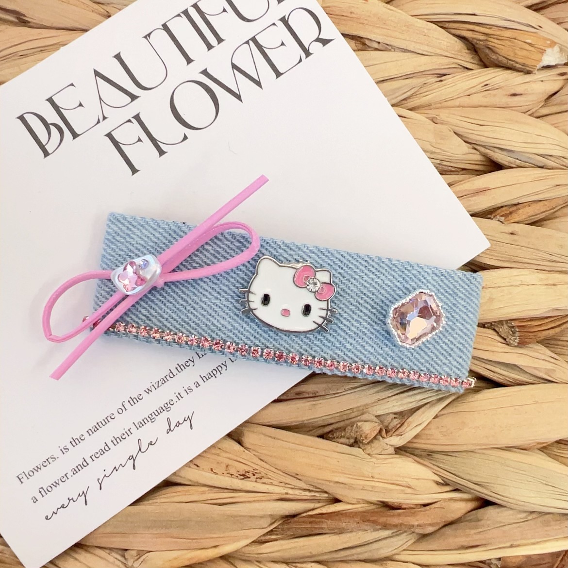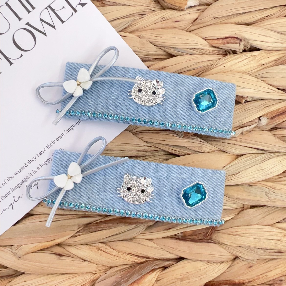 한국 스타일 새로운 달콤한 멋진 소녀 데님 활 머리핀 헤어 액세서리 귀여운 만화 방귀 클립 헤어 클립 상어 클립스토어 가기