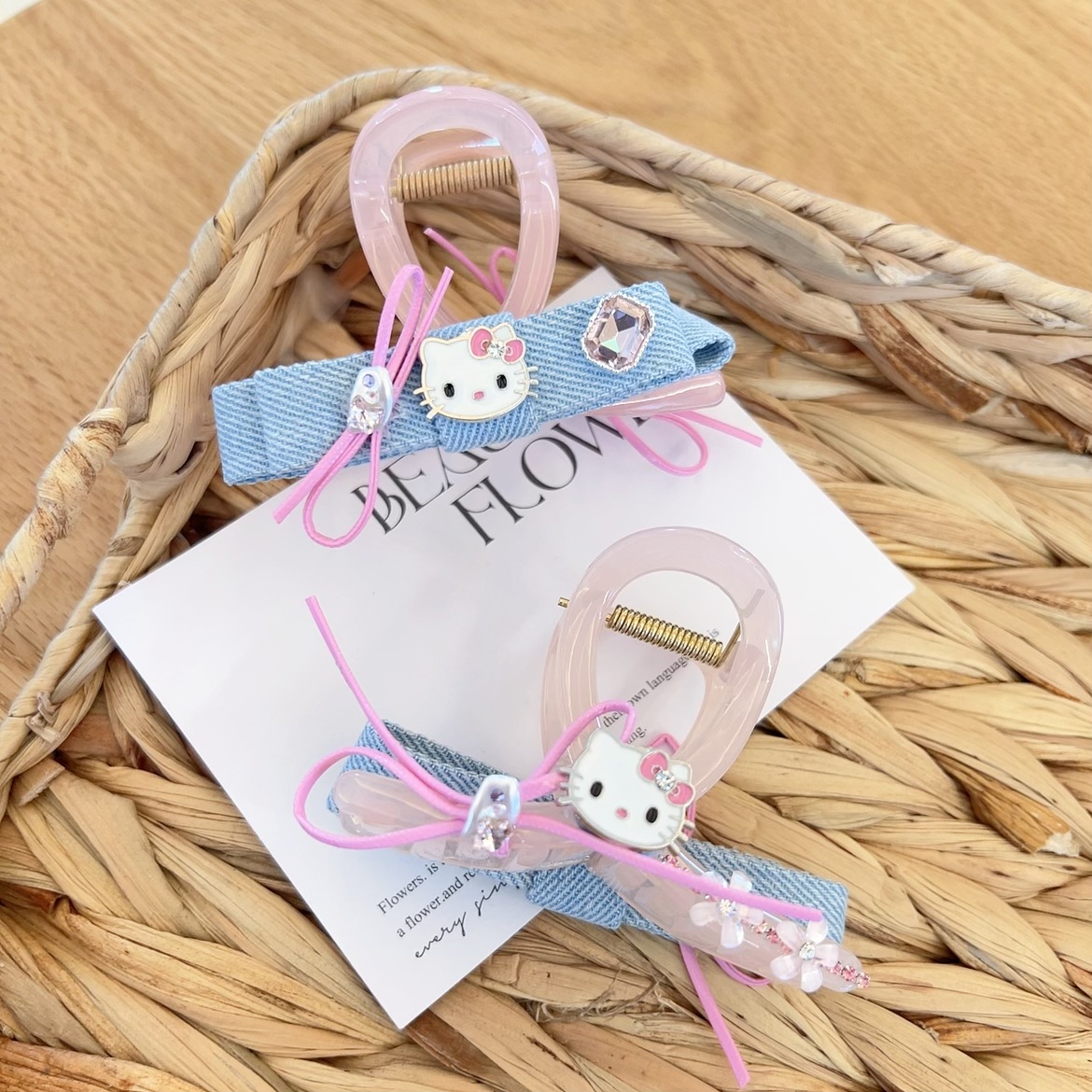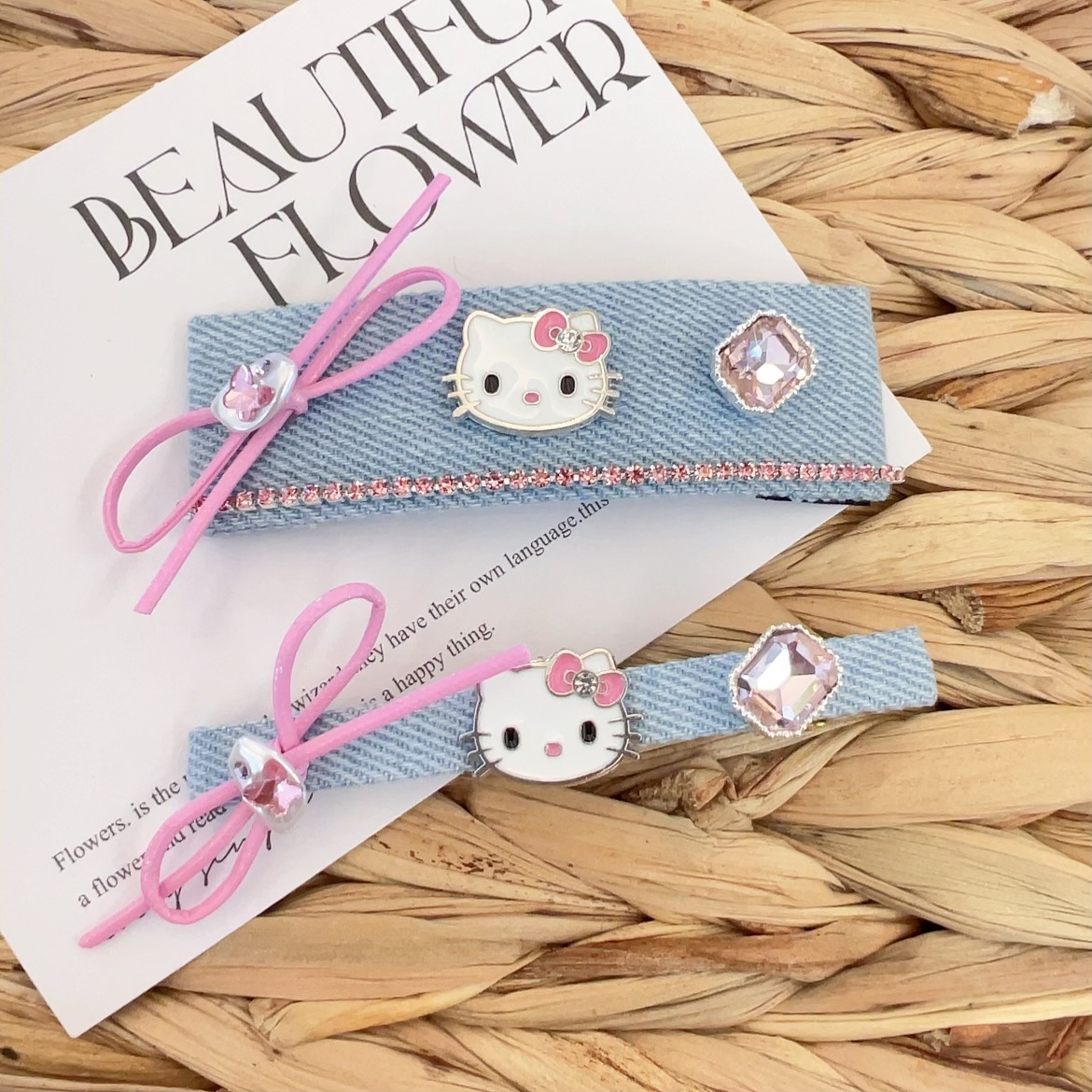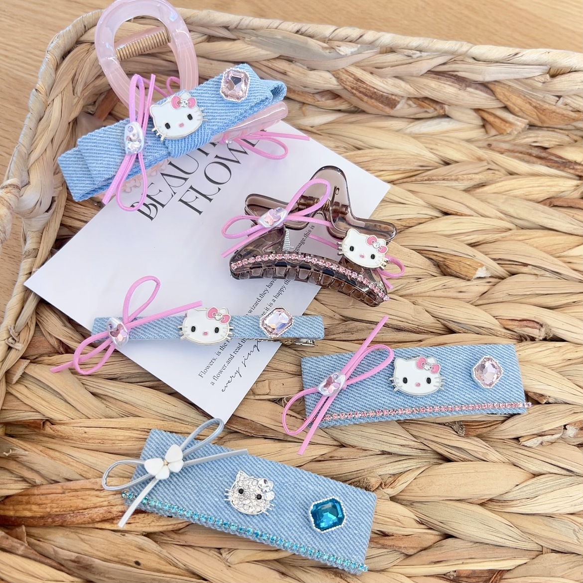 한국 스타일 새로운 달콤한 멋진 소녀 데님 활 머리핀 헤어 액세서리 귀여운 만화 방귀 클립 헤어 클립 상어 클립
