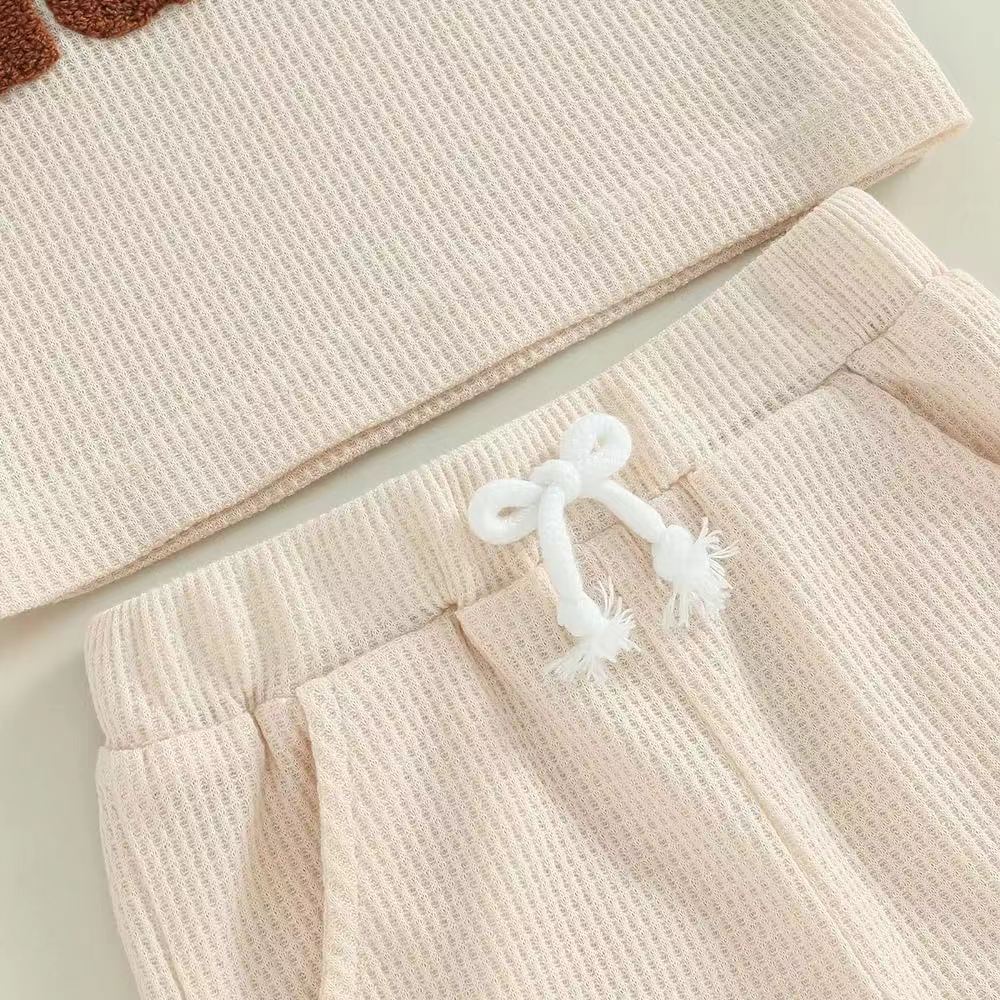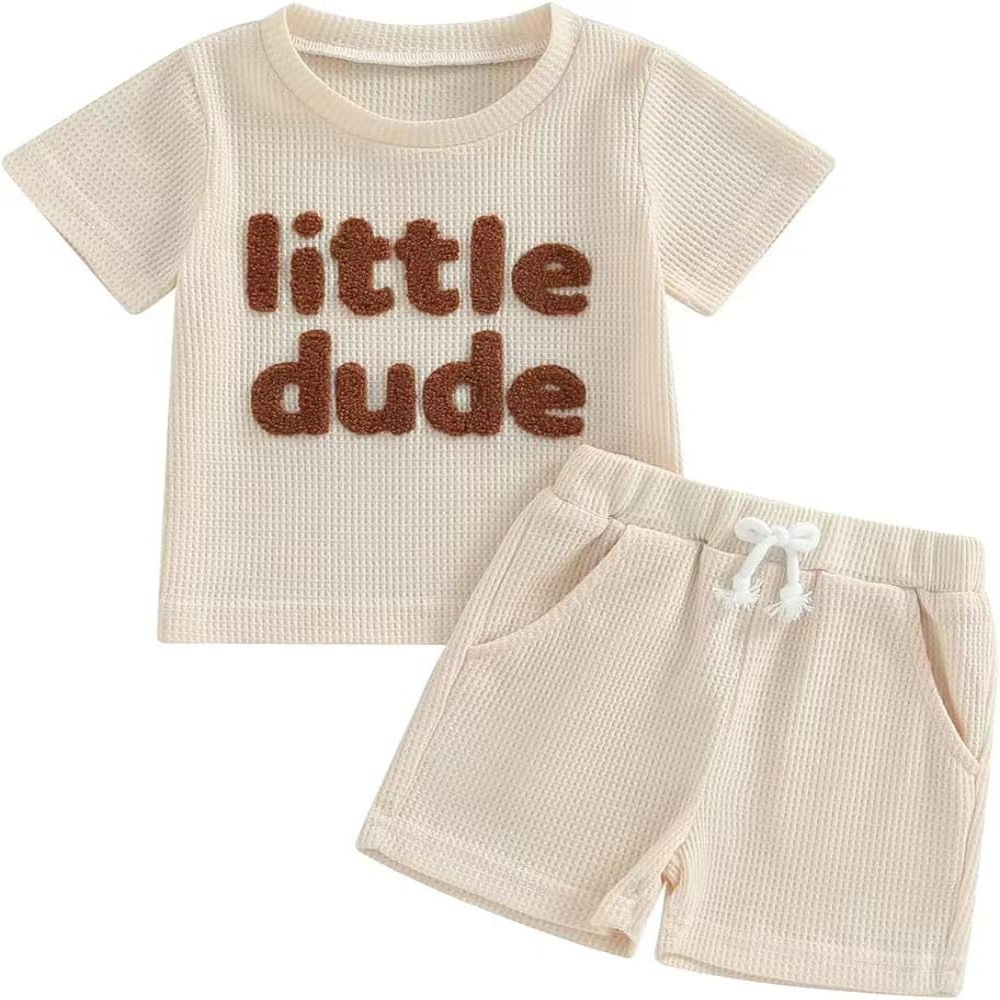 0-2 년 된 대외 무역 새로운 세트 와플 원단 자수 어린이 짧은 소매 세트 통기성 부드러운 피부 친화적 인 직물