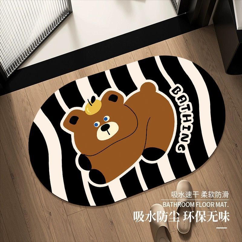 귀여운 줄무늬 작은 동물 부드러운 diatom 진흙 욕실 바닥 매트 미끄럼 방지 흡수성 빠른 건조 매트 화장실 샤워 문 매트