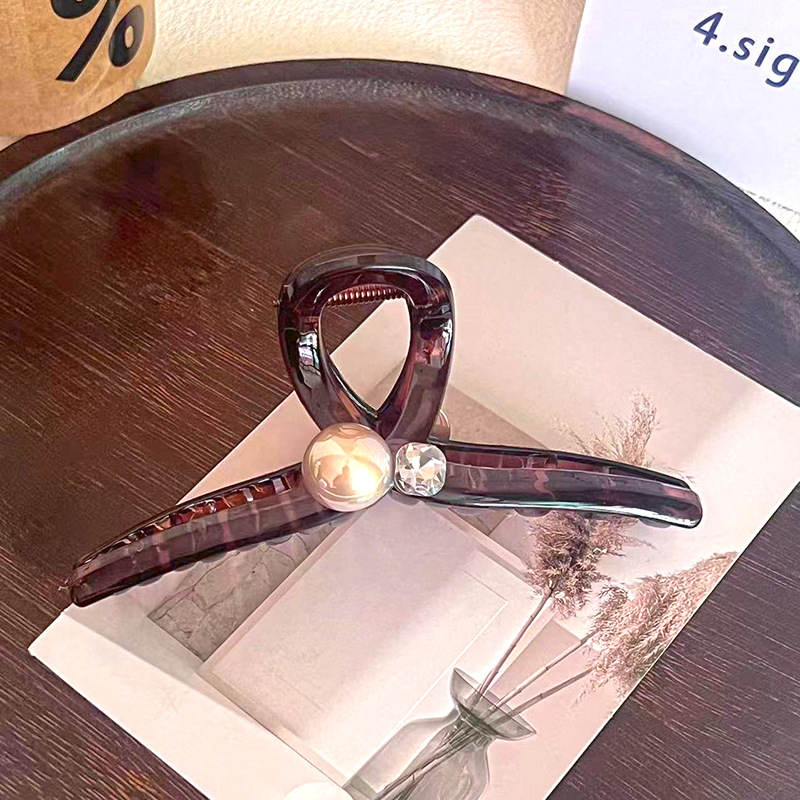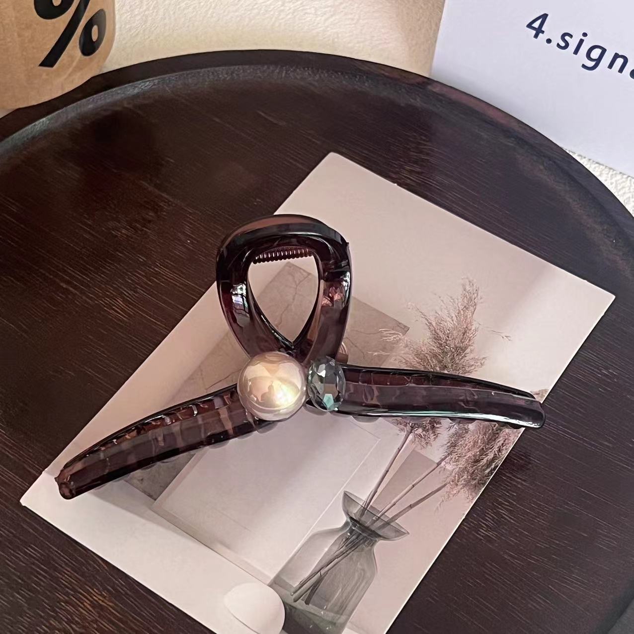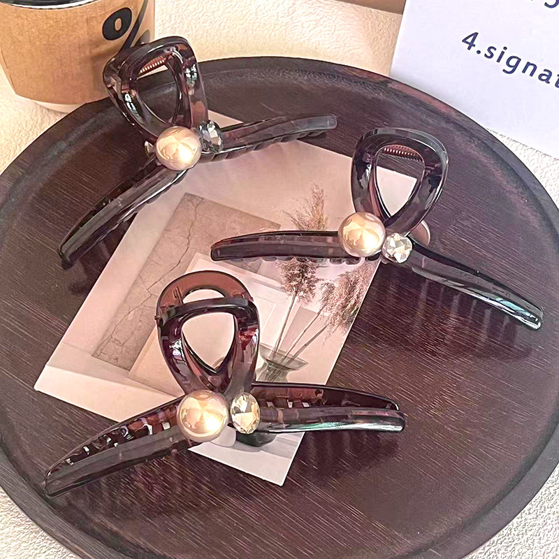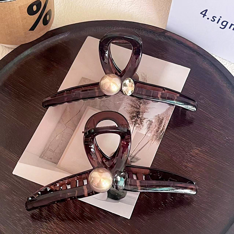고급 둥근 구슬 모조 다이아몬드 머리핀 여성 머리 클립 머리 양 상어 클립 기질 헤어 클립 머리 장식