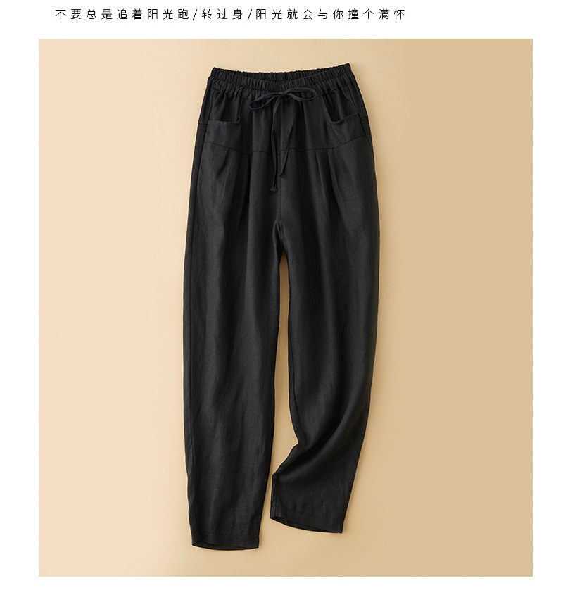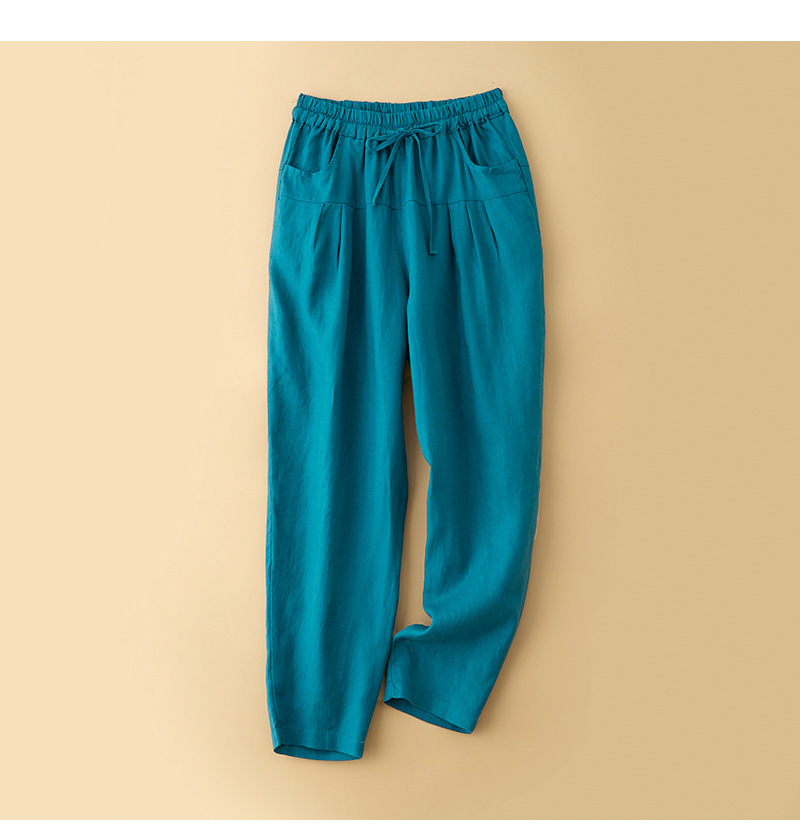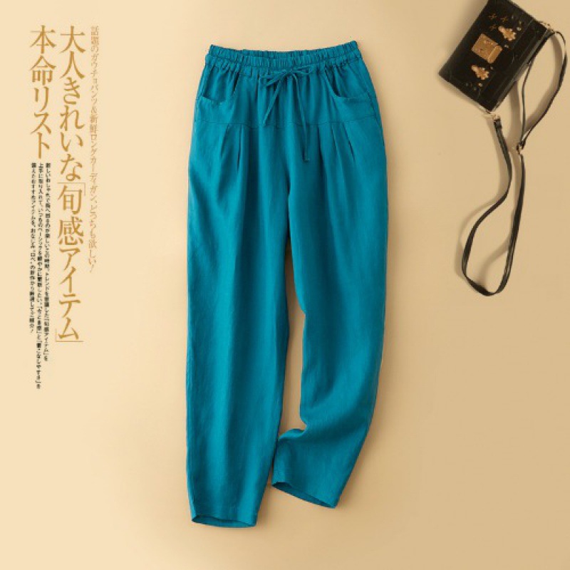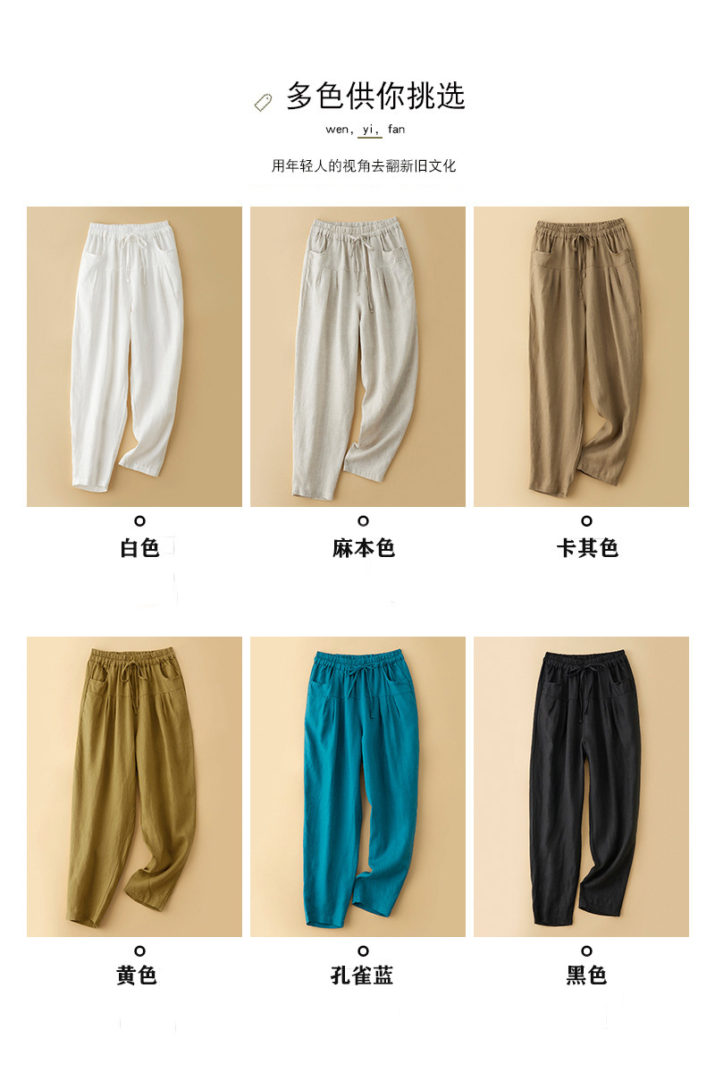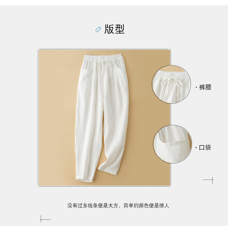 면화 및 리넨 할렌 바지 여성 여름 새 느슨한 플러스 사이즈 느슨한 허리 레이스 단색 한국 캐주얼 자른 당근 바지스토어 가기
