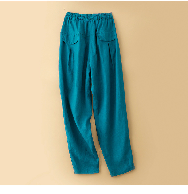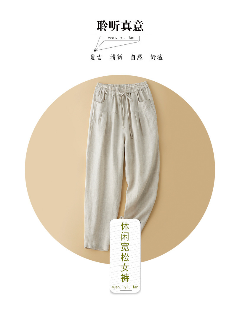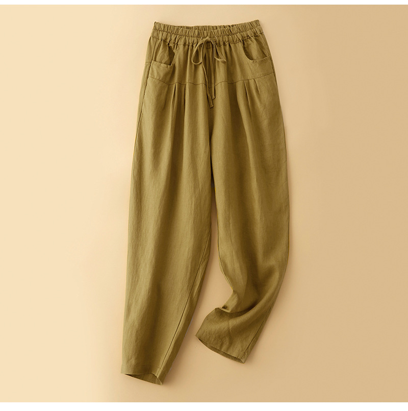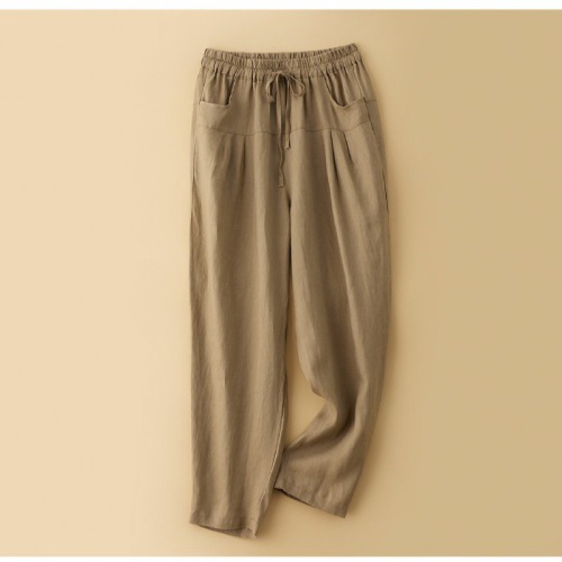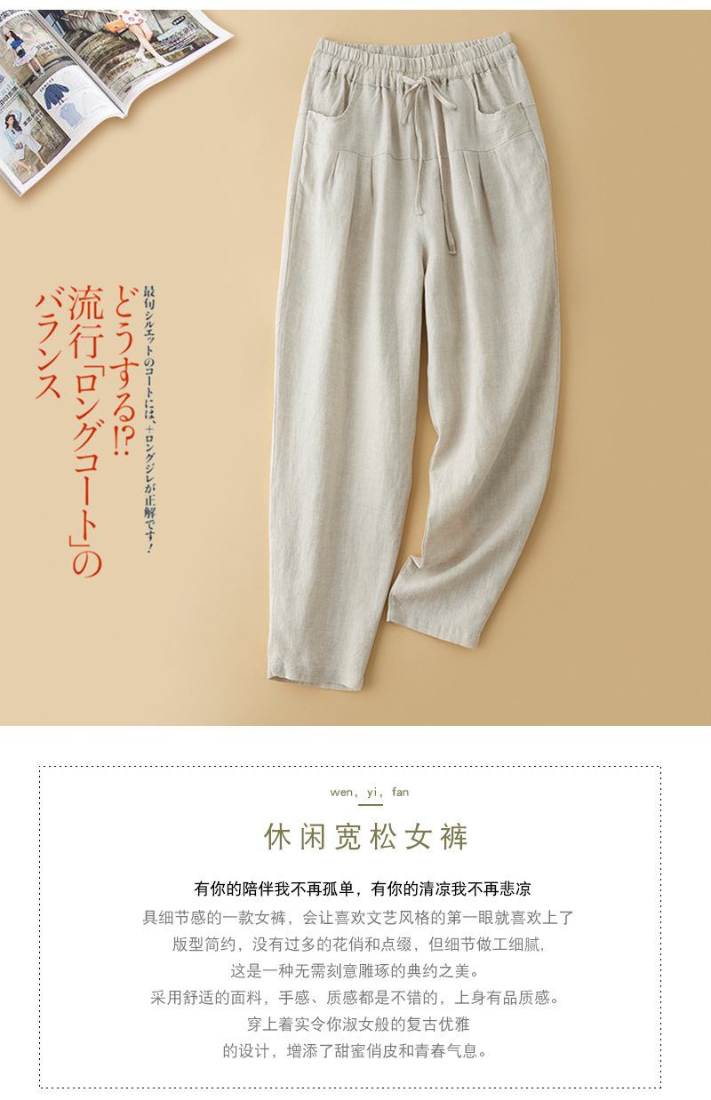 면화 및 리넨 할렌 바지 여성 여름 새 느슨한 플러스 사이즈 느슨한 허리 레이스 단색 한국 캐주얼 자른 당근 바지스토어 가기
