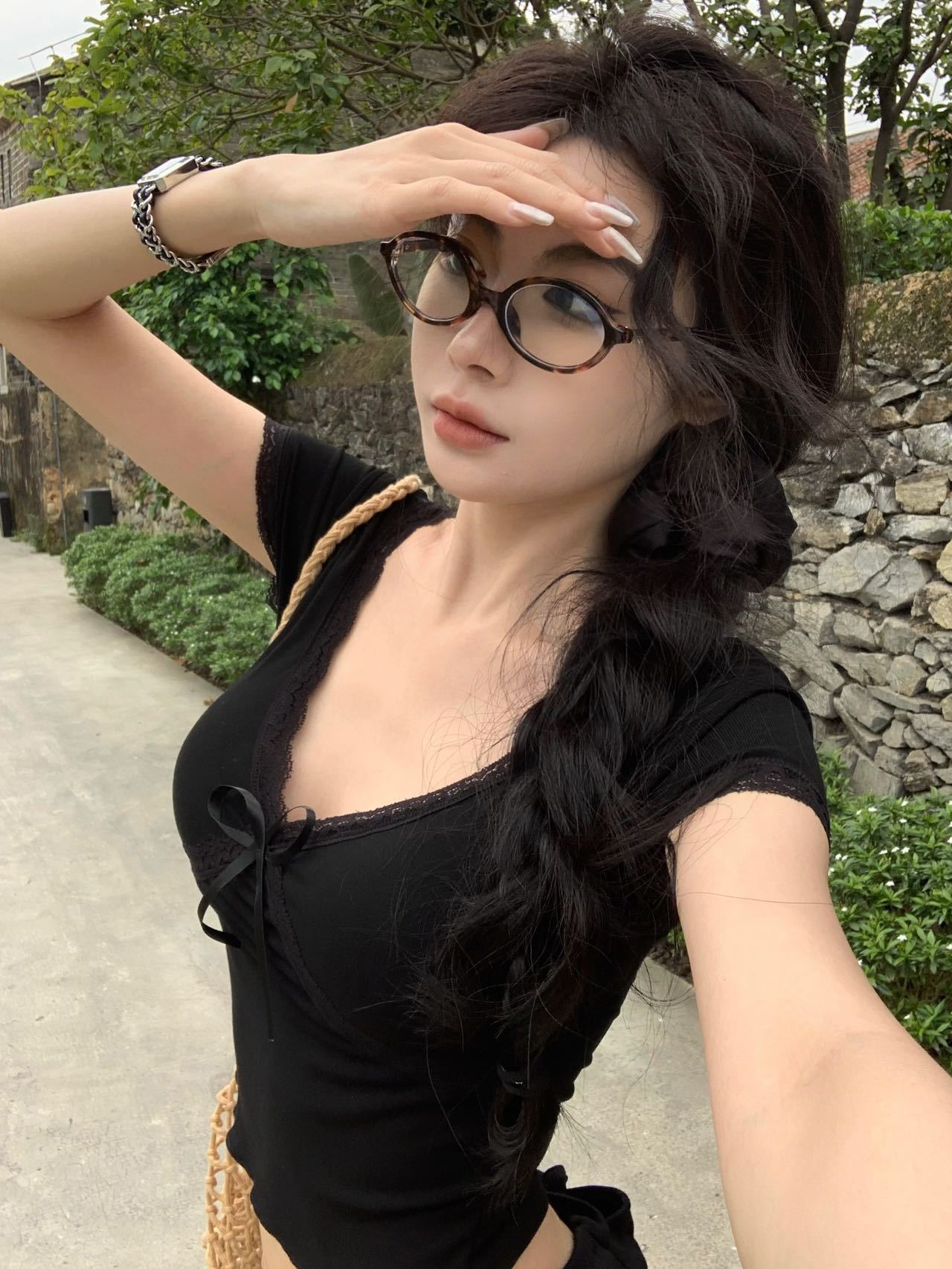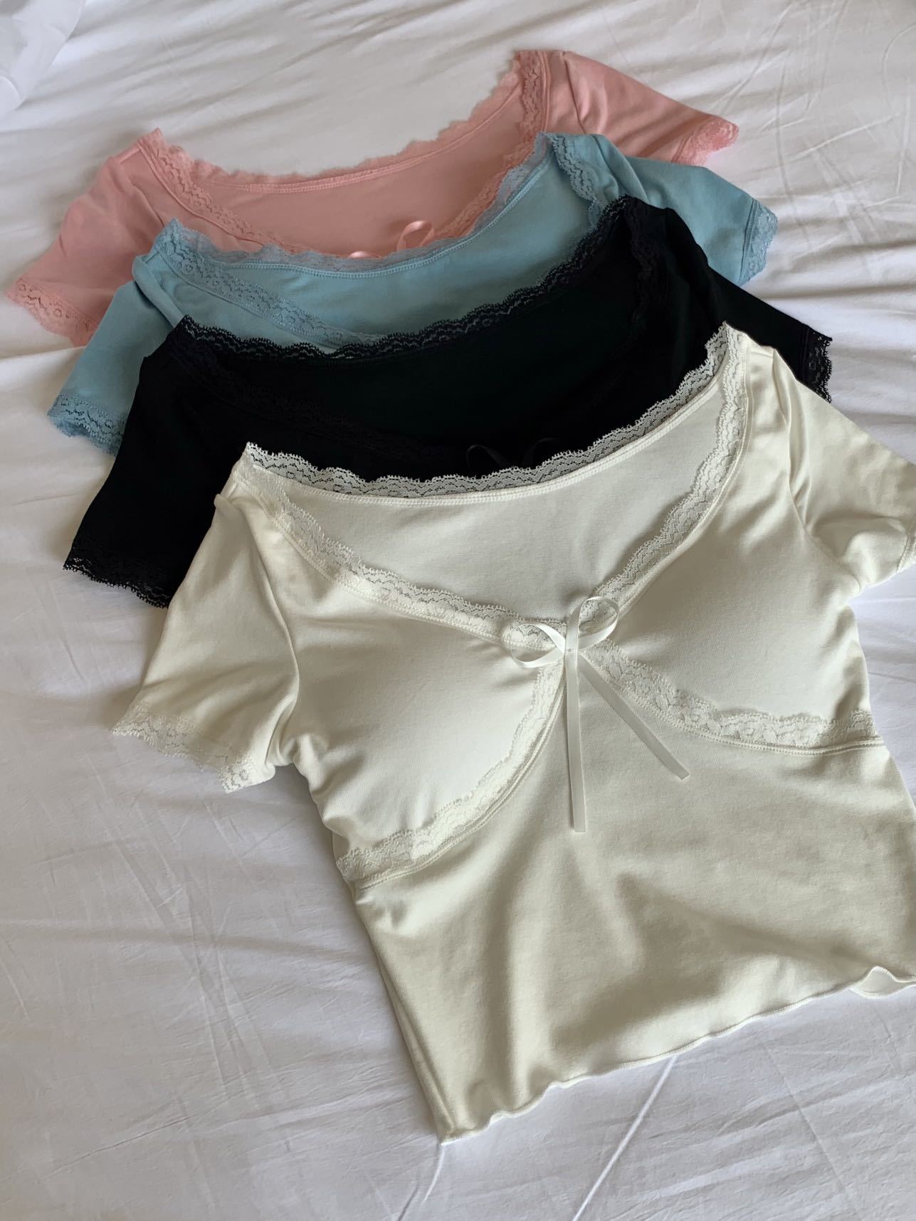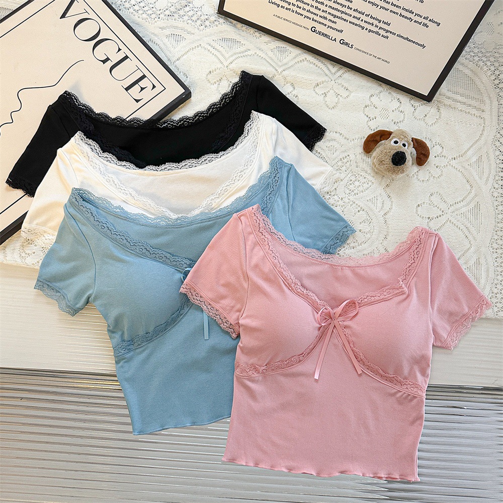 5010 # 새로운 레이스 V-넥 바느질 짧은 티셔츠 여성용 여름 슬림 핏 슬리밍 섹시한 스파이스 소녀 활 탑스토어 가기