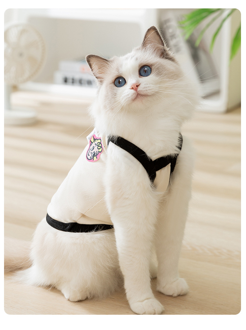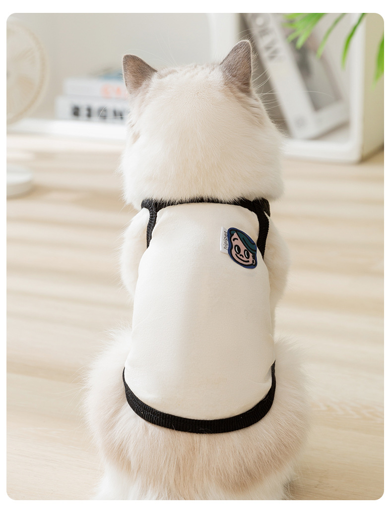 여름 간단한 검은 테두리 소년 소녀 개 조끼 얇은 통기성 두 다리 테디 팬더 고양이 애완 동물 옷