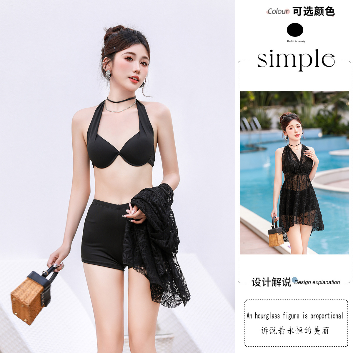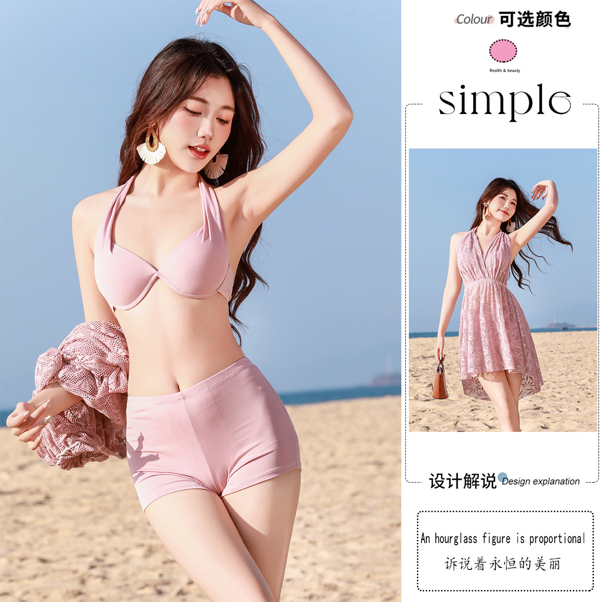 비키니 3 피스 온천 휴가 한국 수영복 크로스 보더 핫 셀러 레이스 하이 엔드 퓨어 스플릿 수영복스토어 가기