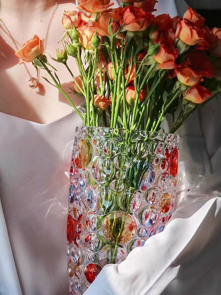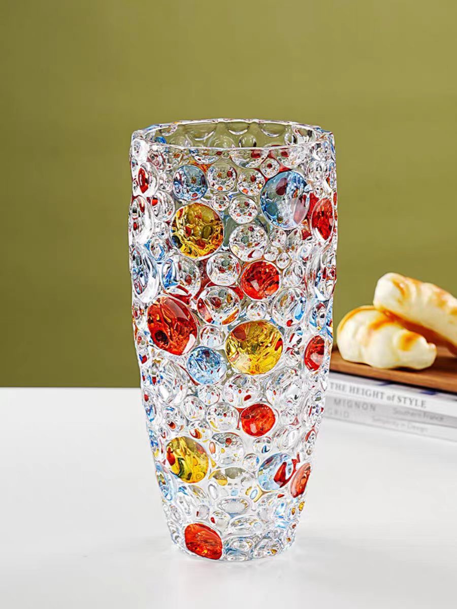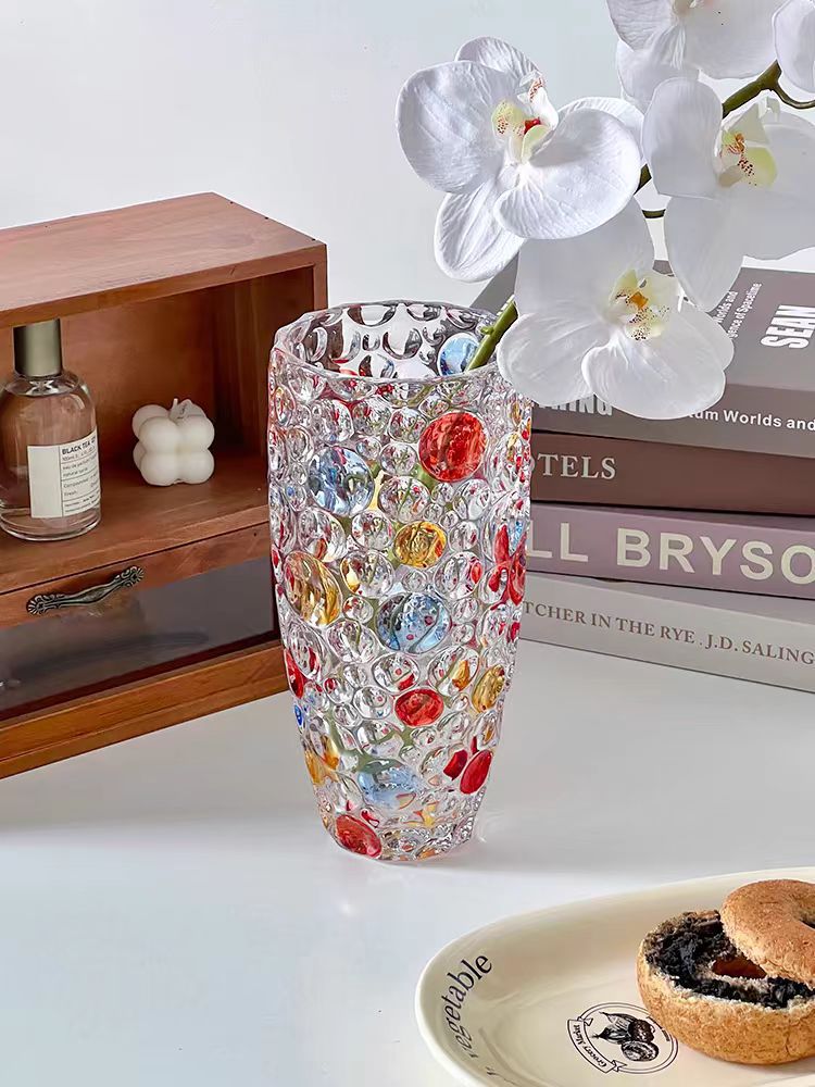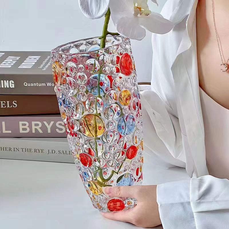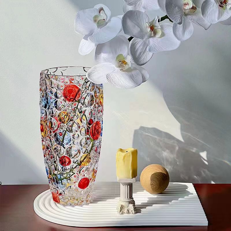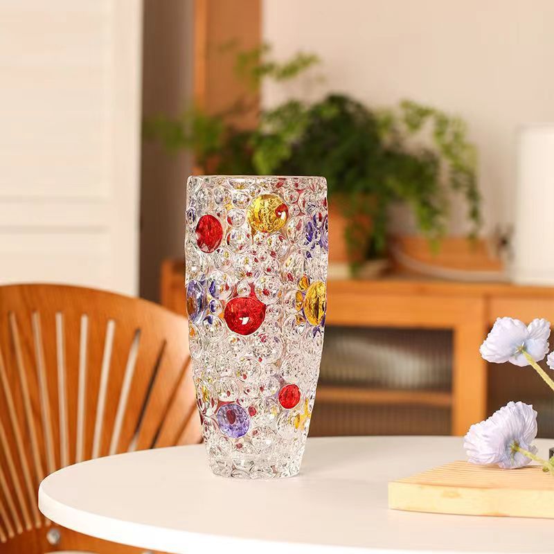 유럽 크리스탈 폴카 도트 꽃병 꽃꽂이 수경 식물 시뮬레이션 꽃 백합 유리 거실 침실 홈 말린 꽃