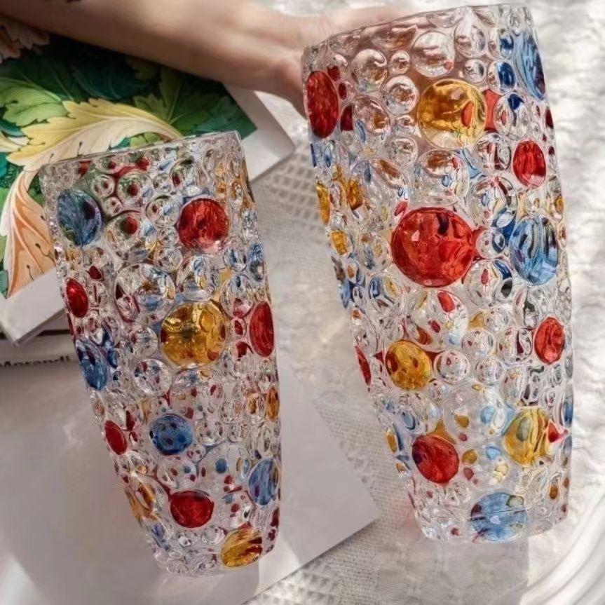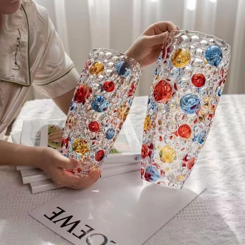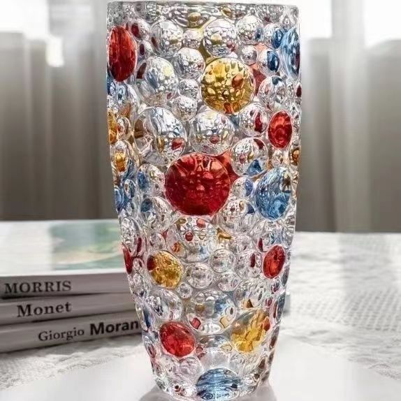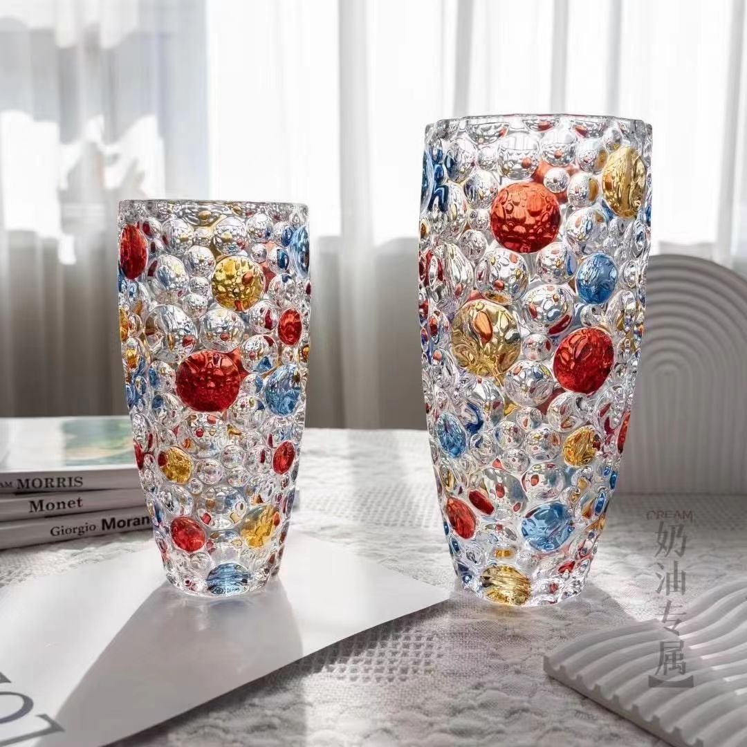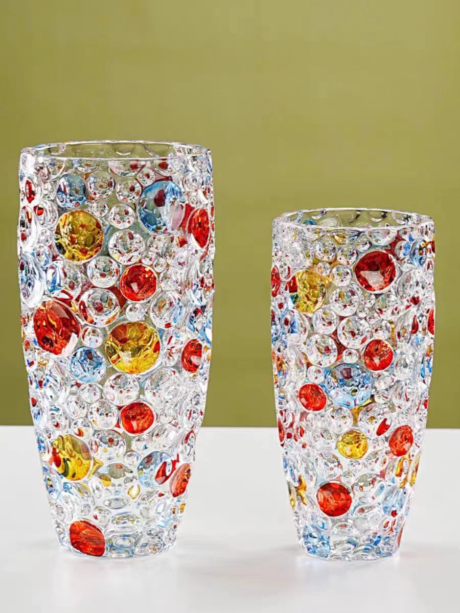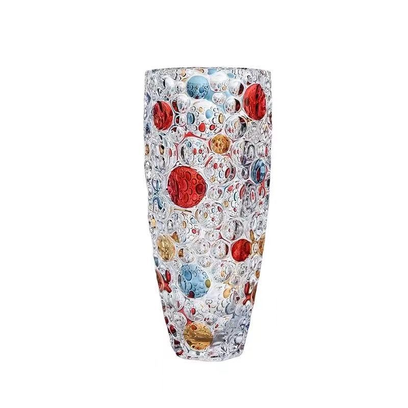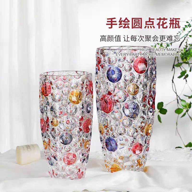 유럽 크리스탈 폴카 도트 꽃병 꽃꽂이 수경 식물 시뮬레이션 꽃 백합 유리 거실 침실 홈 말린 꽃스토어 가기